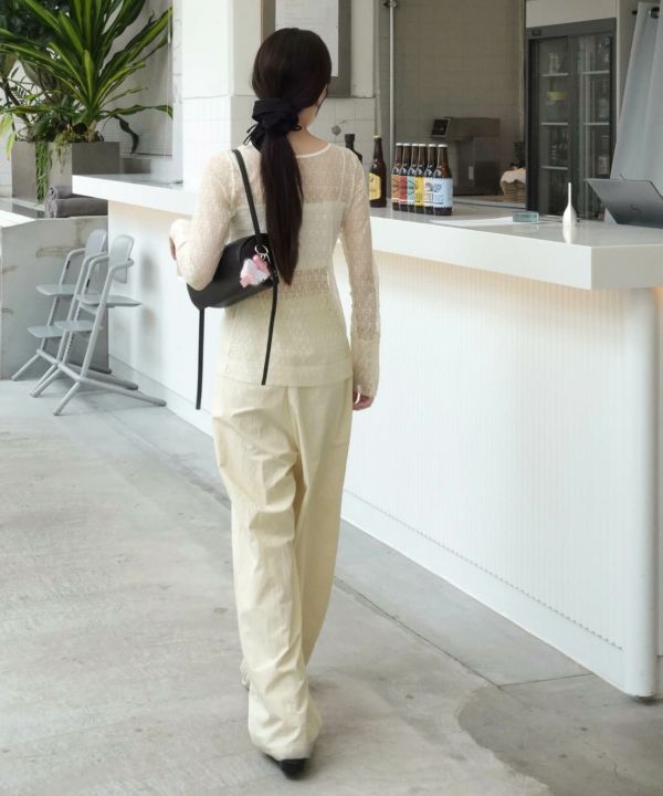 肌あたりが優しく、繊細な編み柄が上品な印象に。