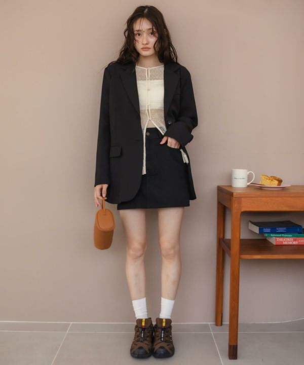 韓国オンニ風に仕上げるなら、ショートパンツ+ジャケットを重ねて、華奢なバッグやカラーソックスで遊び心をプラスするのもおすすめ。