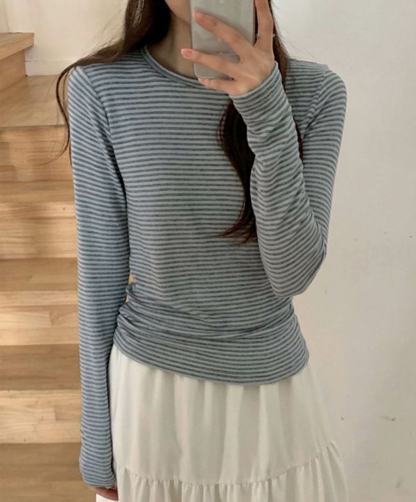 シャツやスウェット、カーディガンのインナーとして取り入れればボーダーがさりげないアクセントになり、レイヤードスタイルに奥行きをプラスします。