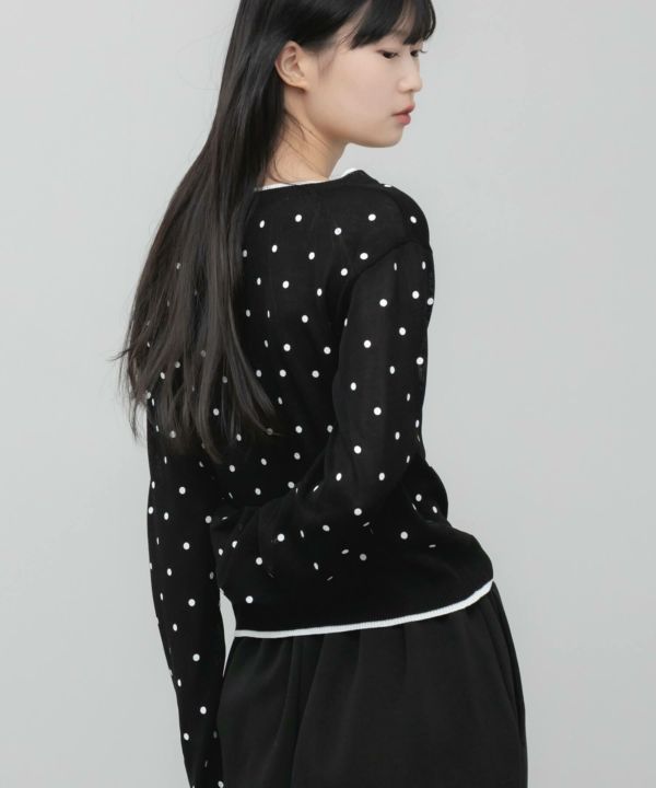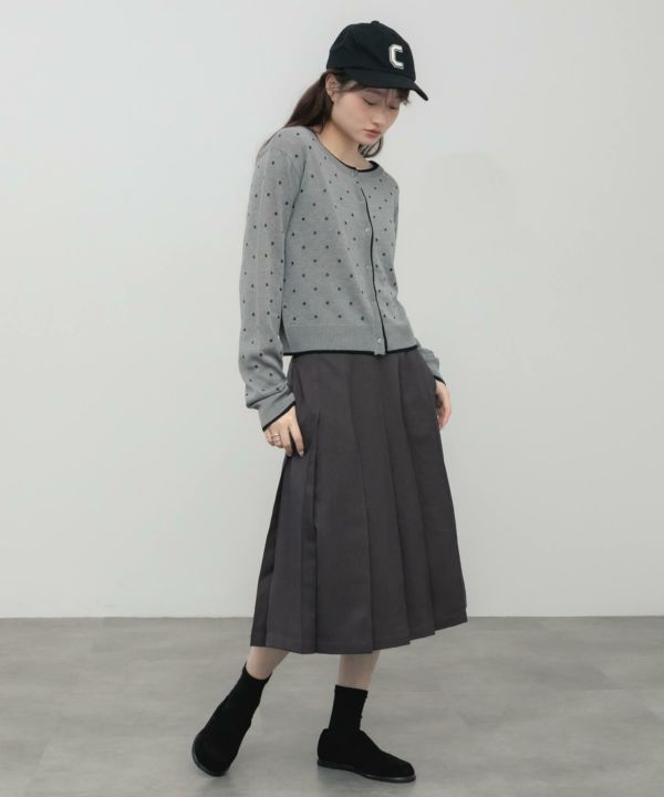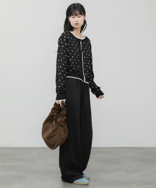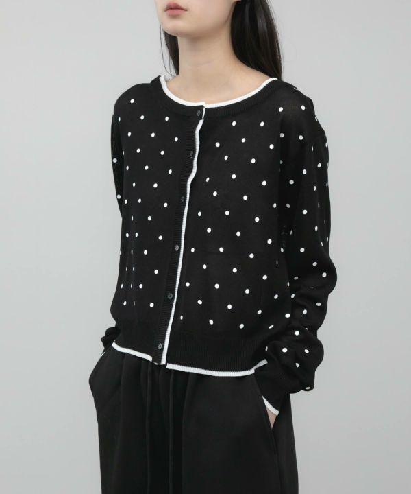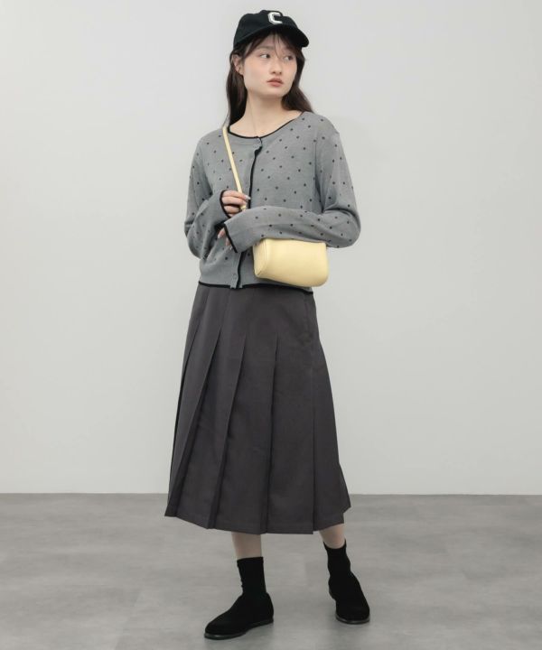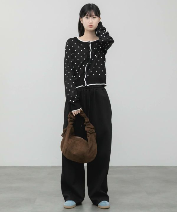 甘くなりがちなドットも、コントラストのある配色とすっきりしたシルエットで、程よく大人な印象に仕上げています。