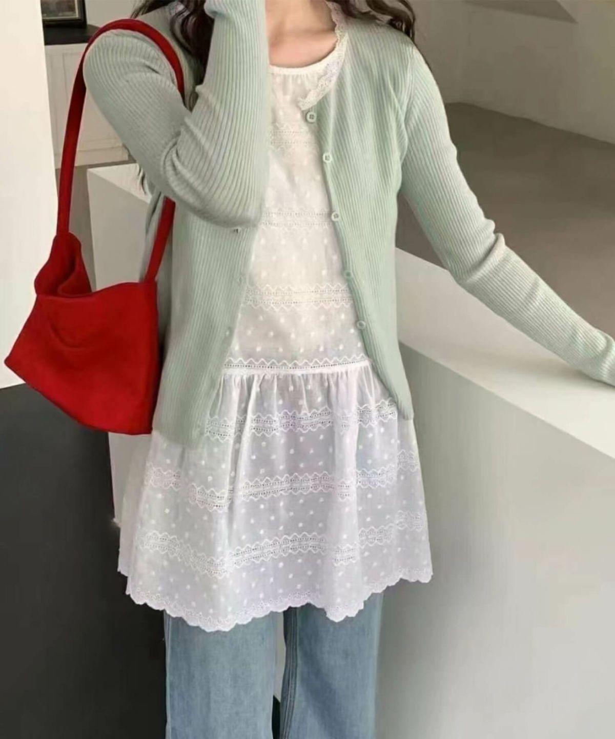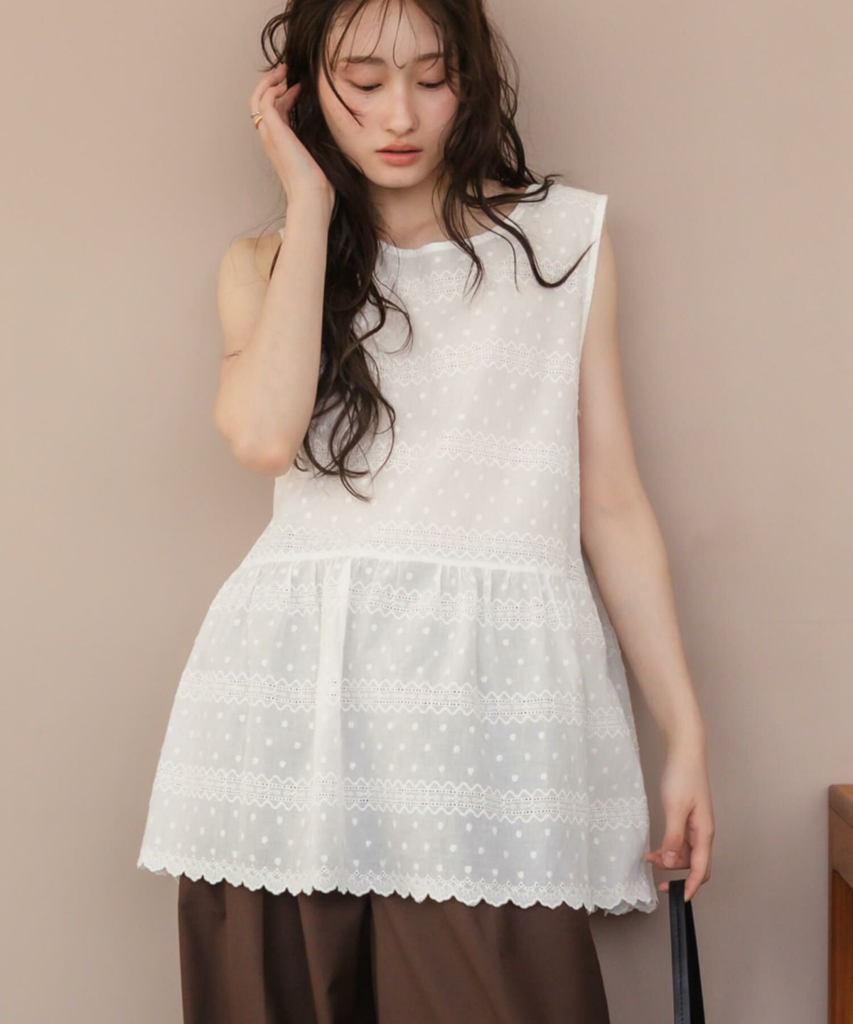繊細なレースが印象的 Cotton Tunic Dress