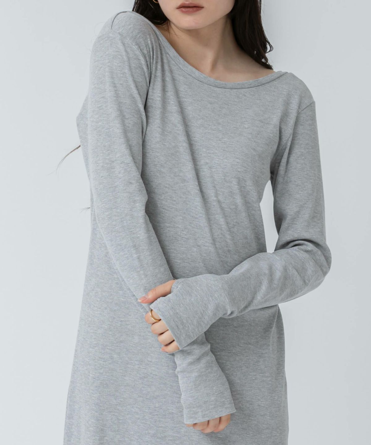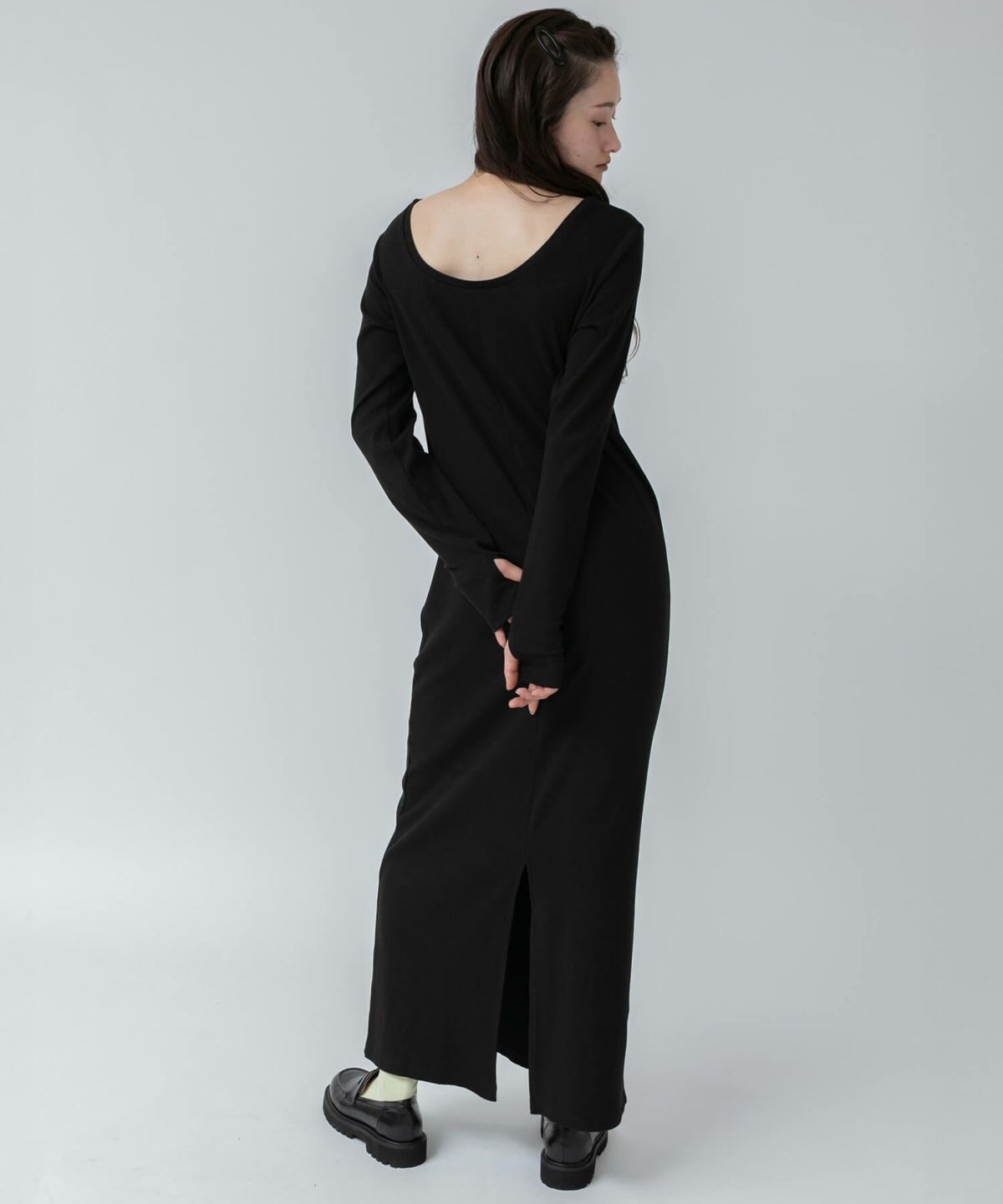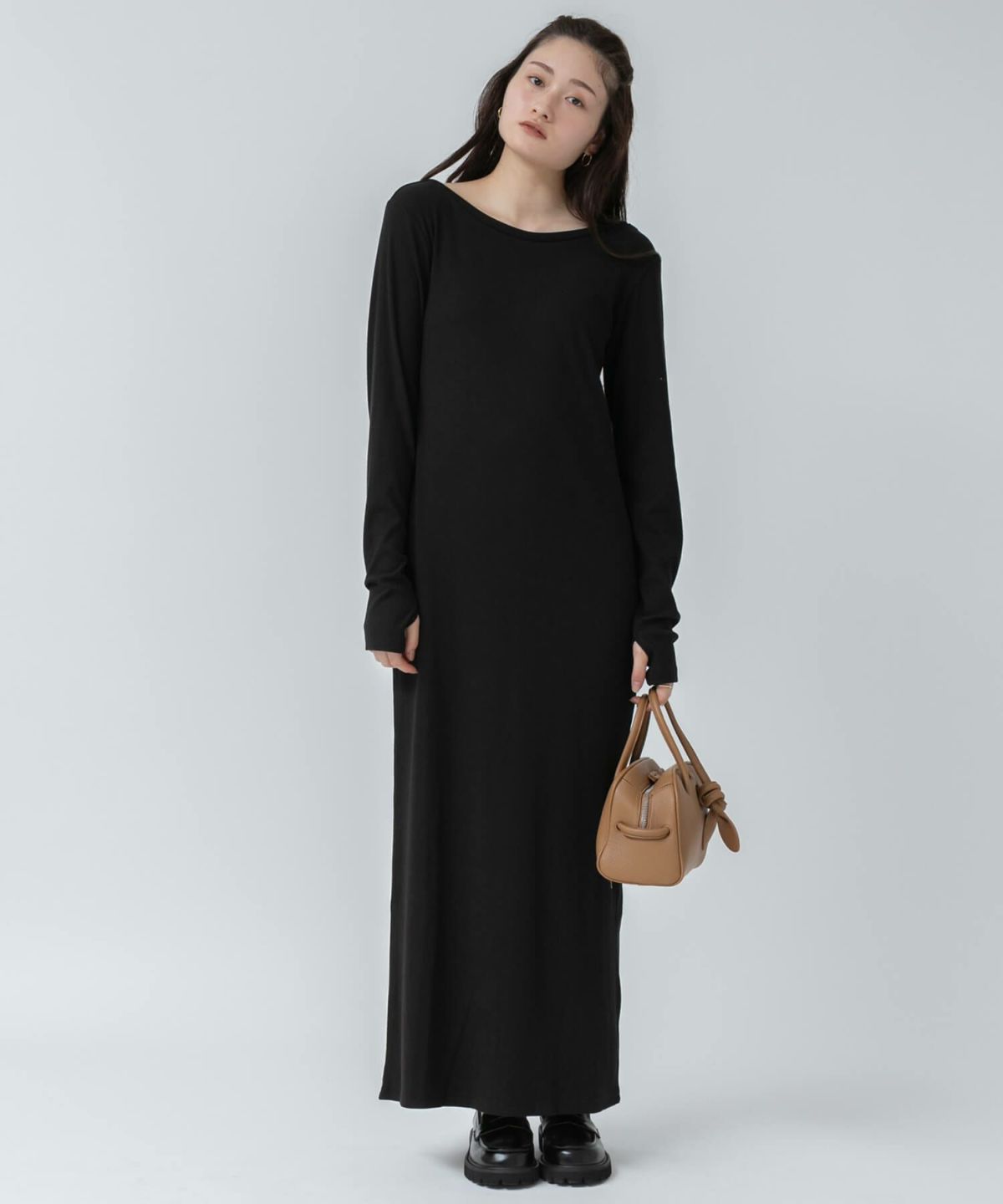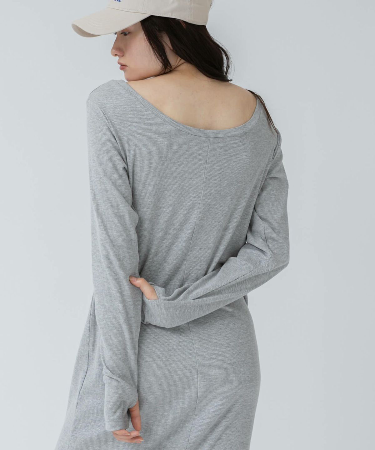 リブロングワンピース 【original】Rib Cutsew Back Shan Dress