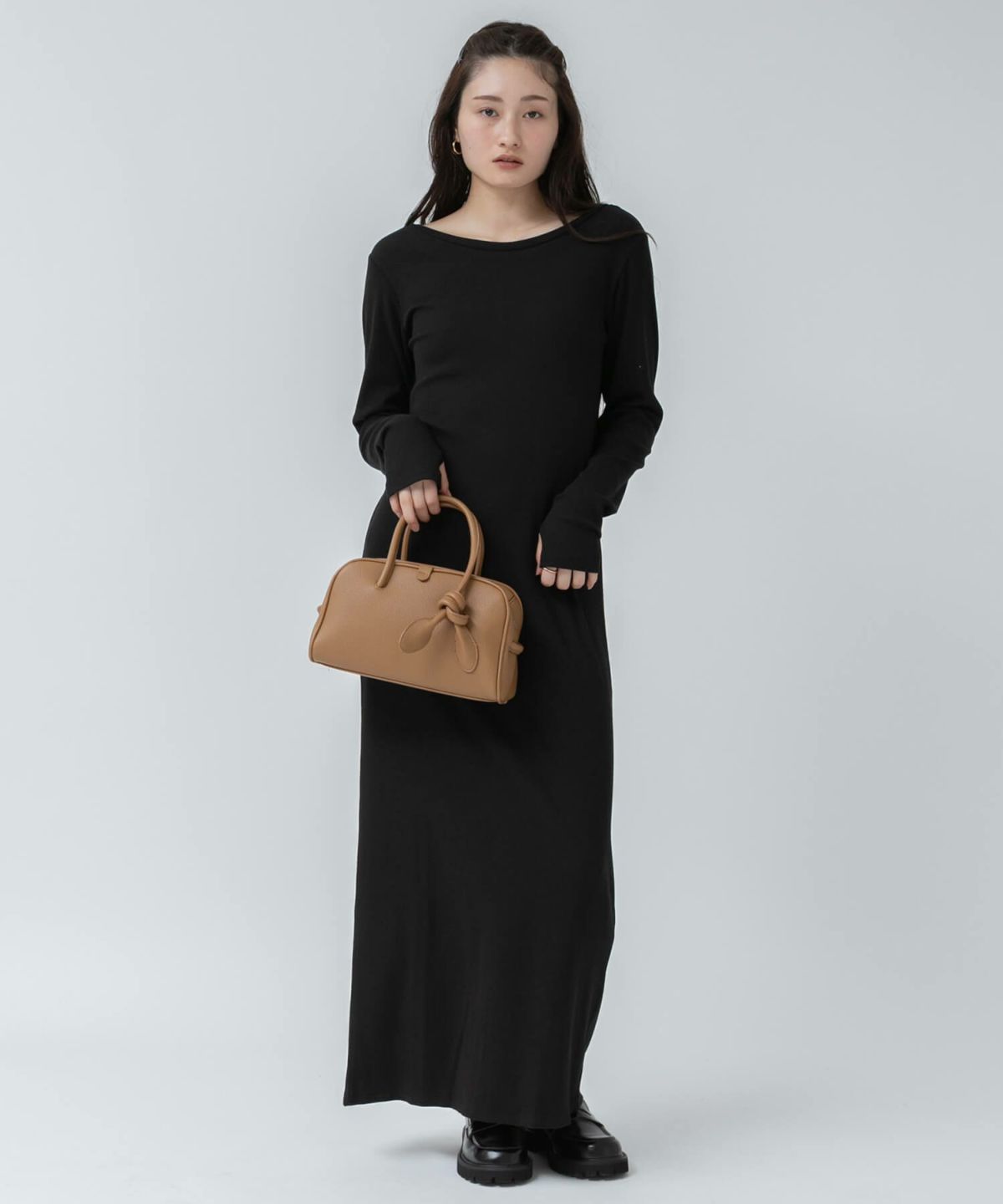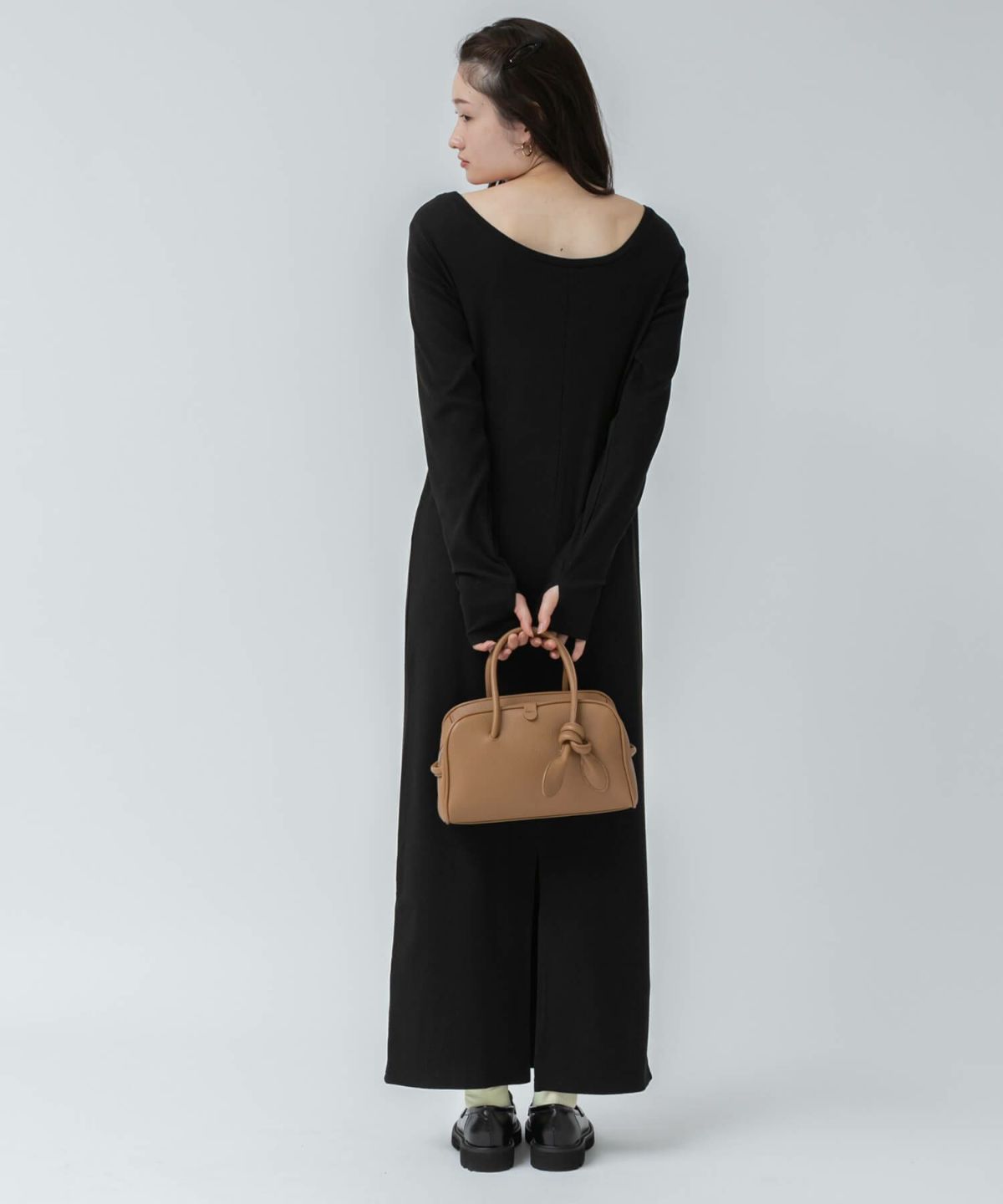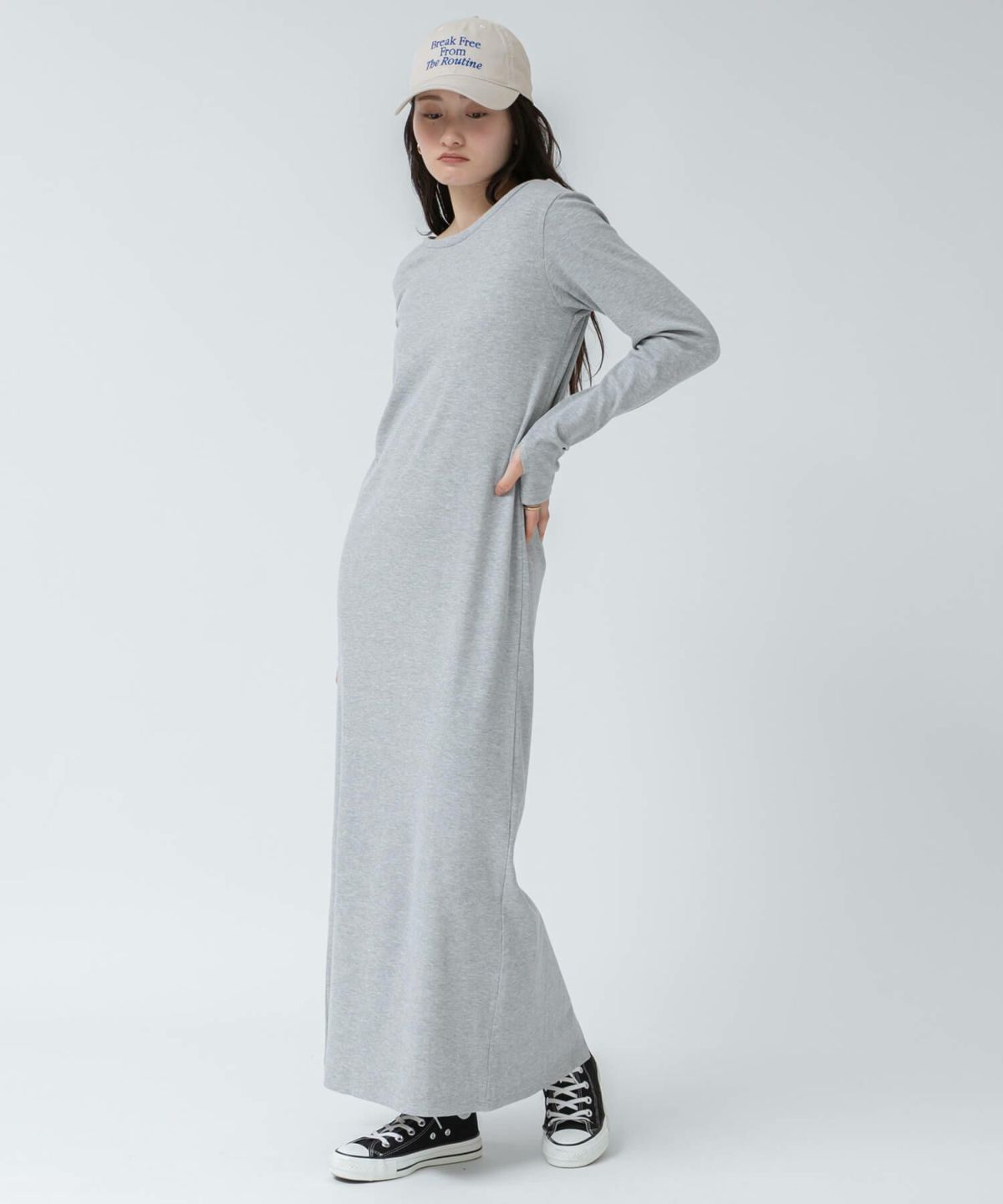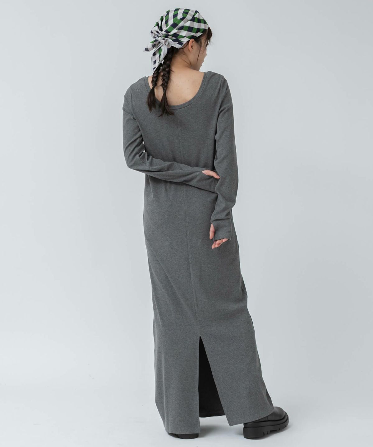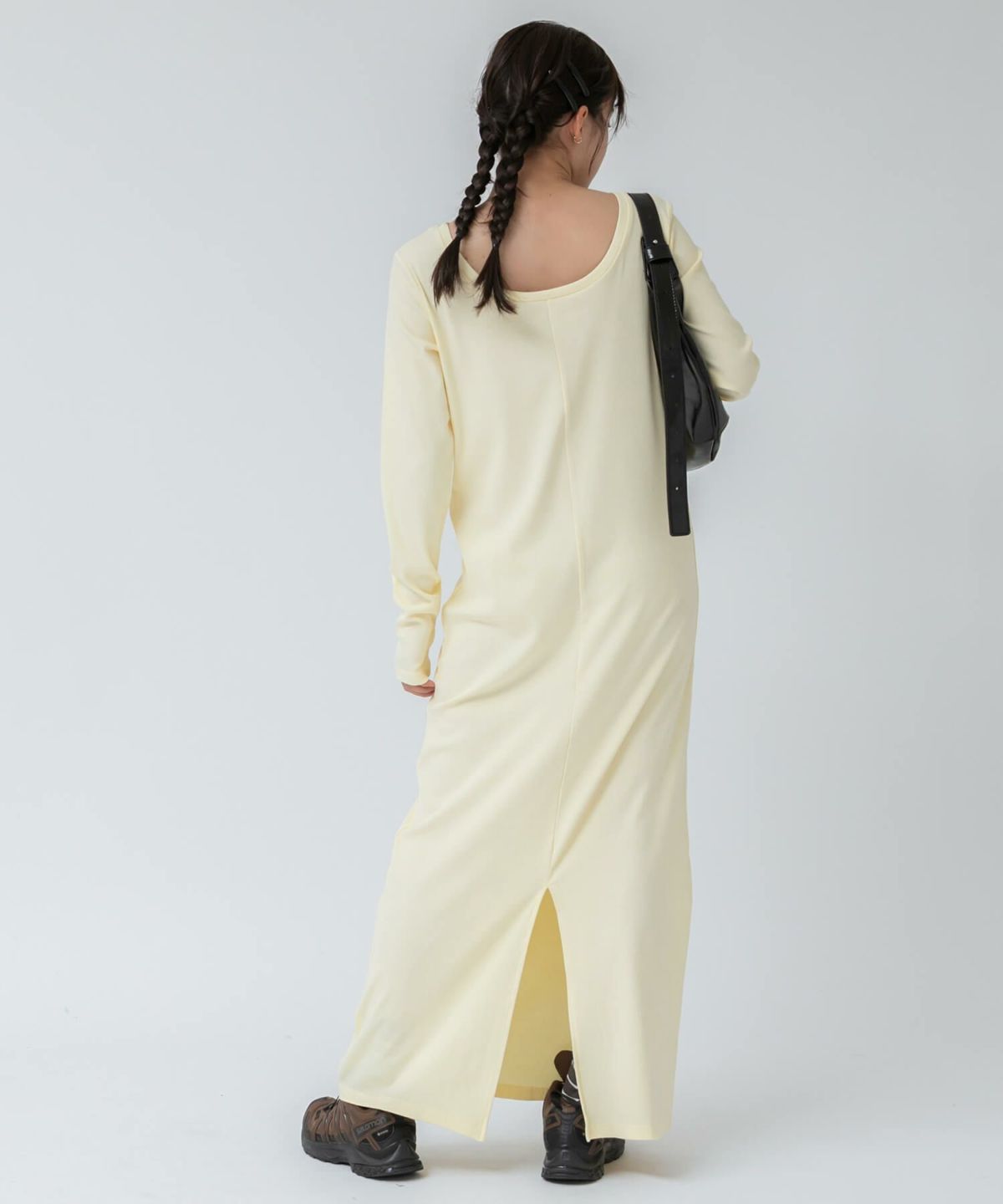 リブロングワンピース 【original】Rib Cutsew Back Shan Dress