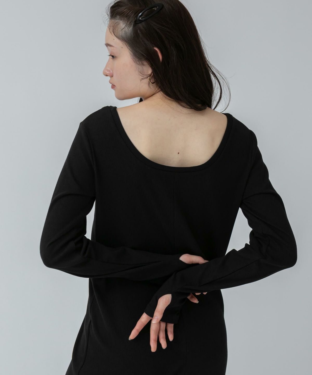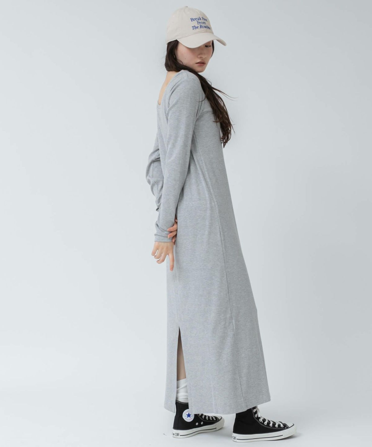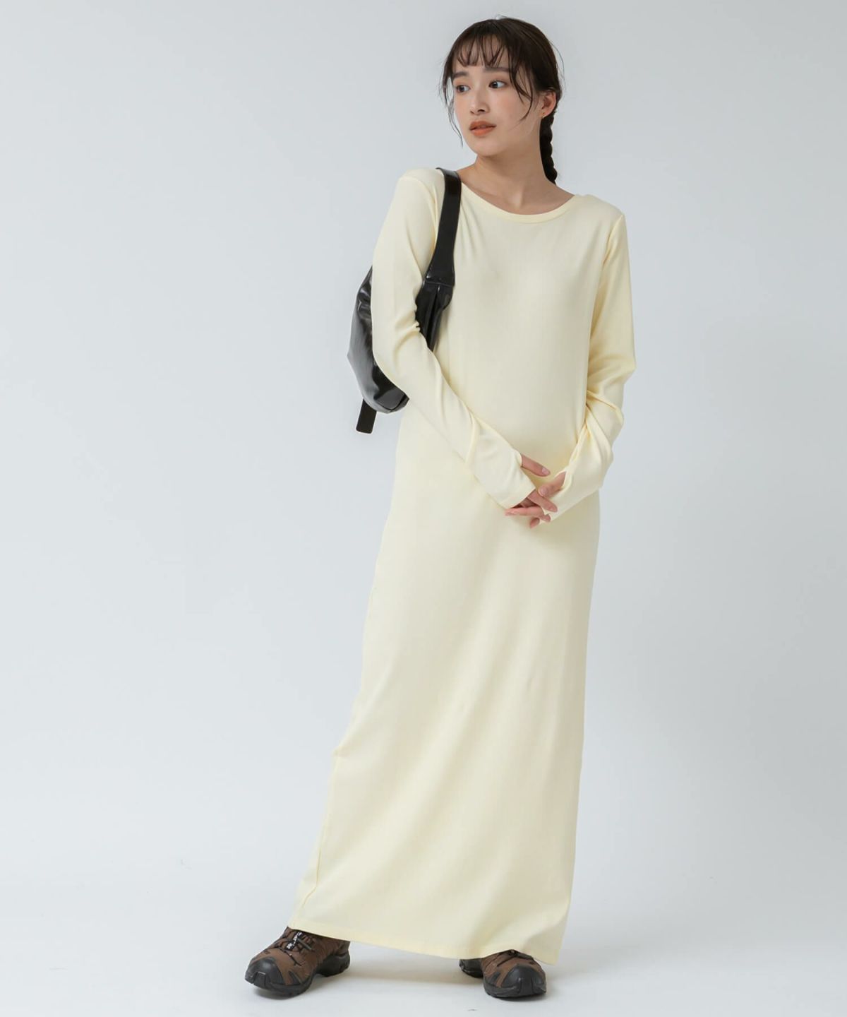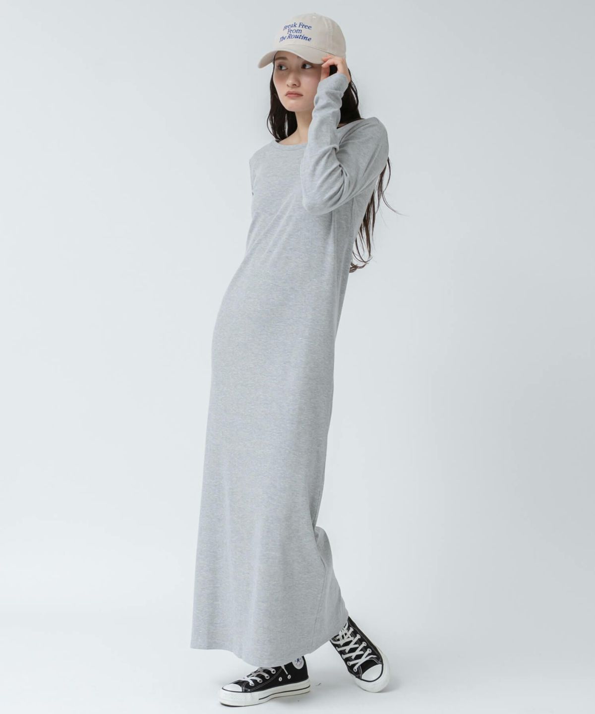リブロングワンピース 【original】Rib Cutsew Back Shan Dress
