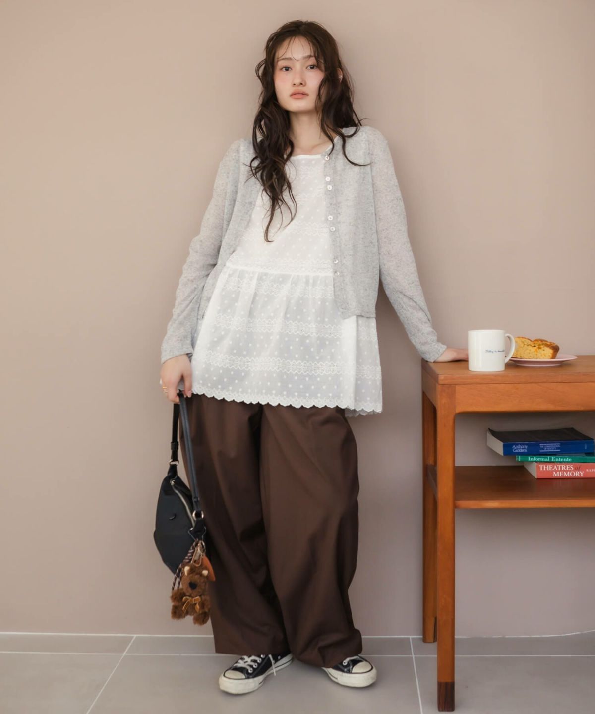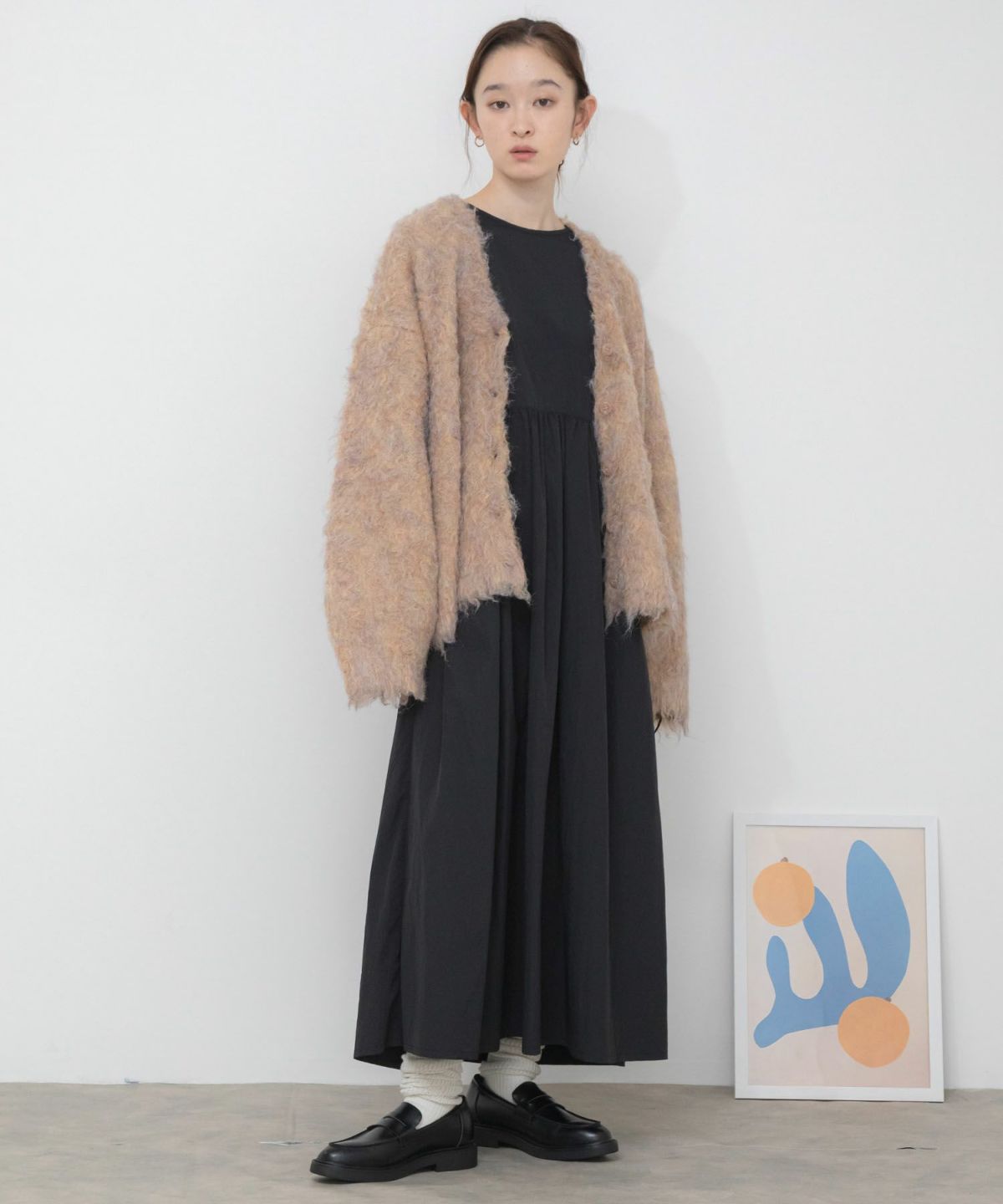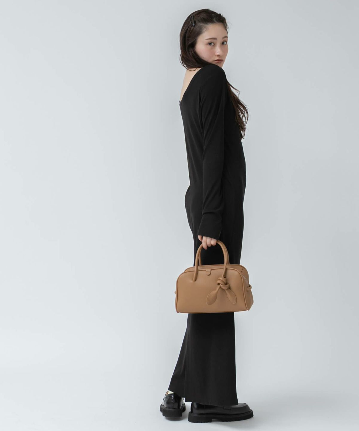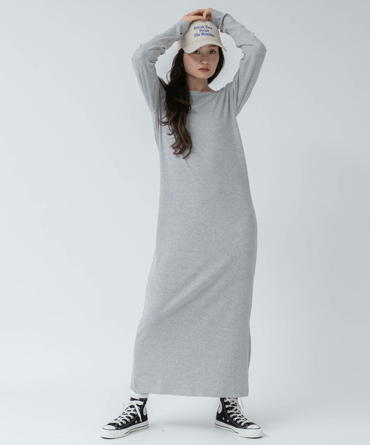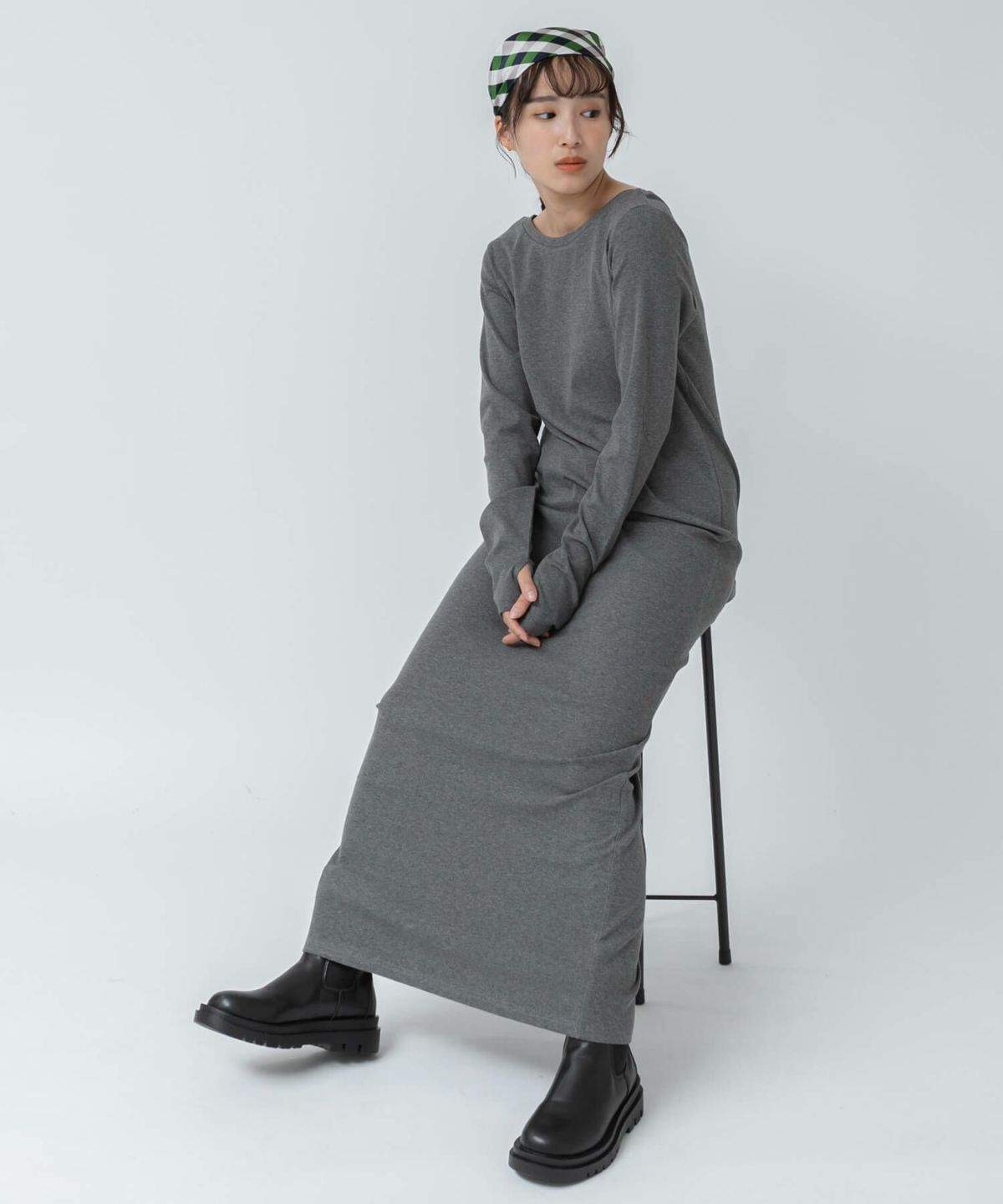 リブロングワンピース 【original】Rib Cutsew Back Shan Dress
