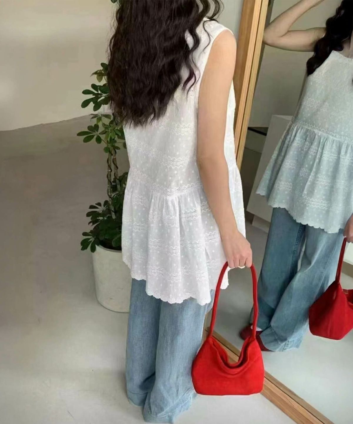ふんわり広がるキャミワンピース Sheer Jacquard Camisole Dress