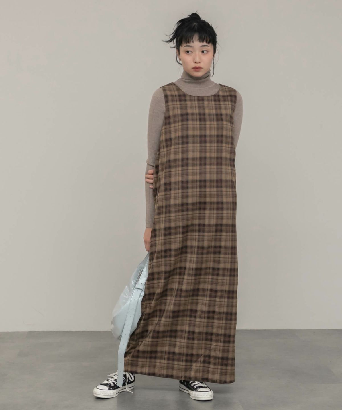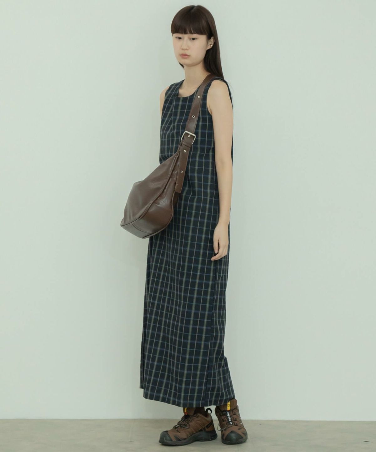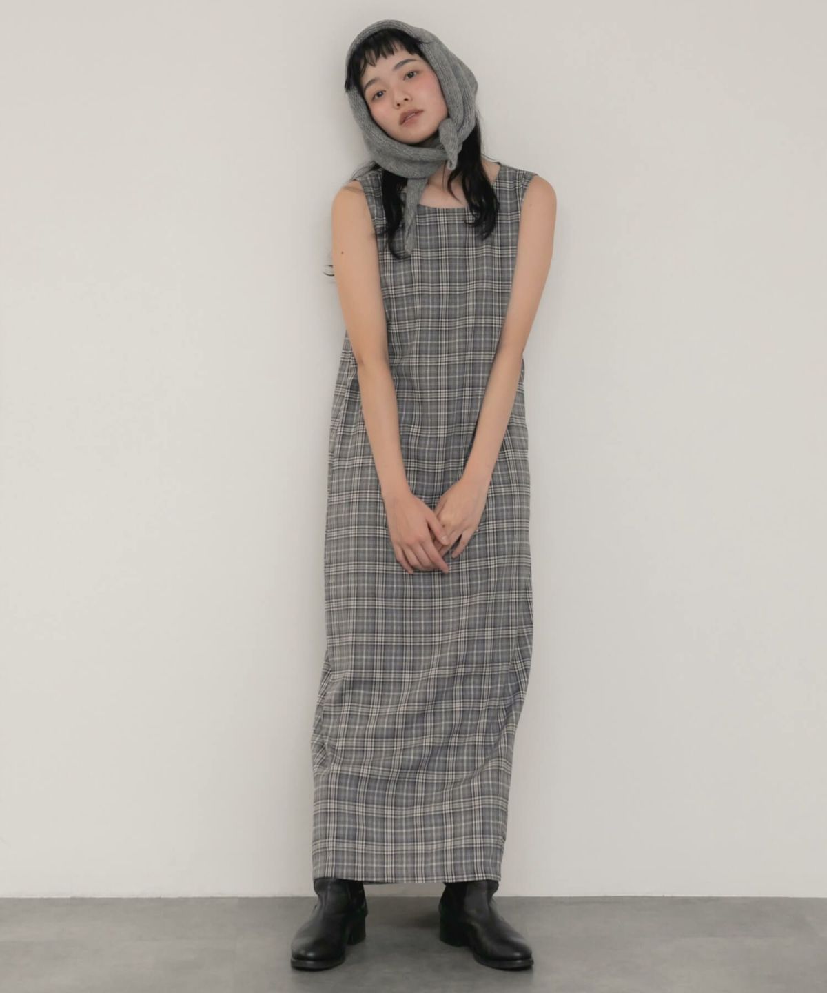 チェック柄が大人可愛いロングワンピース Check Long Dress