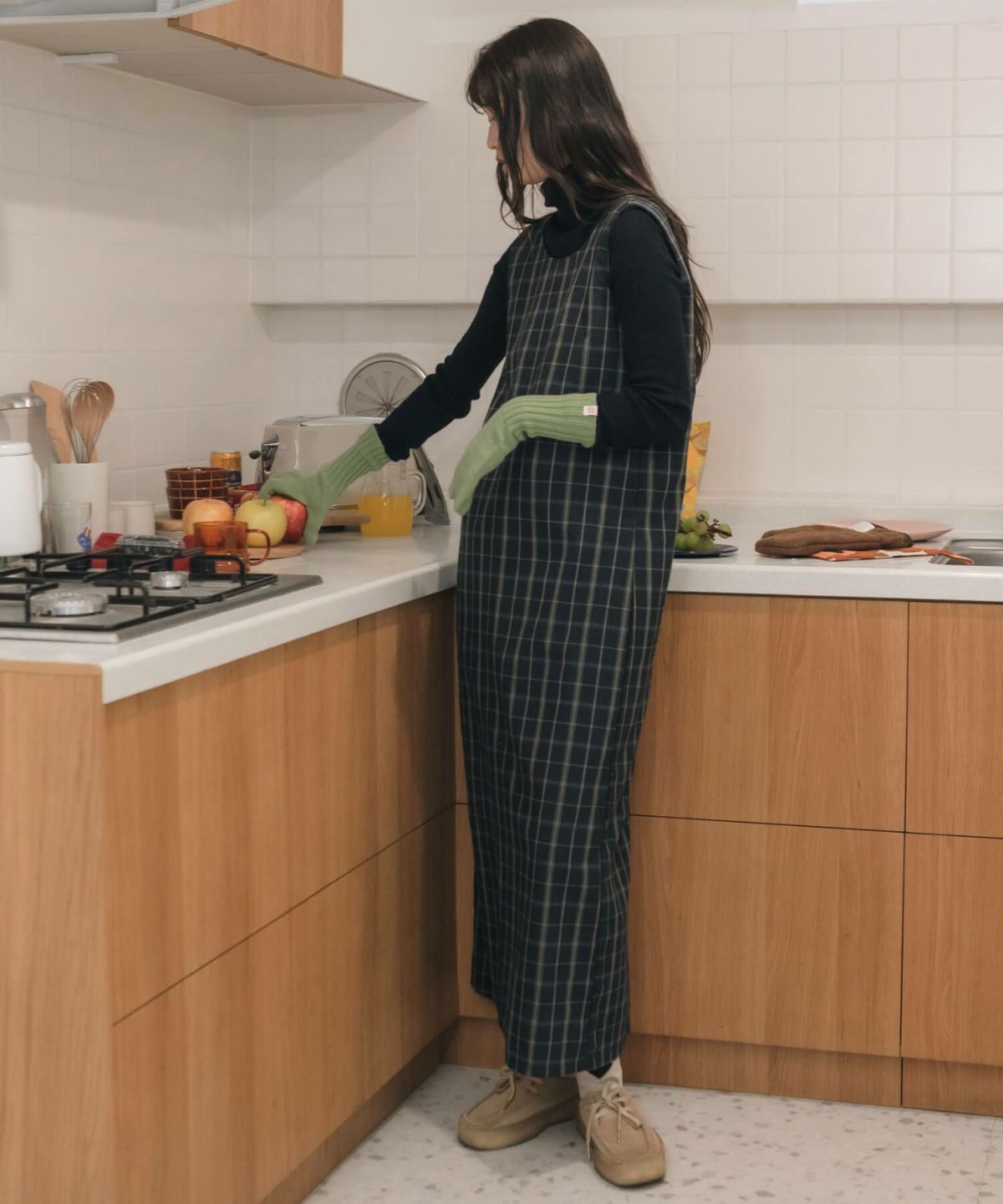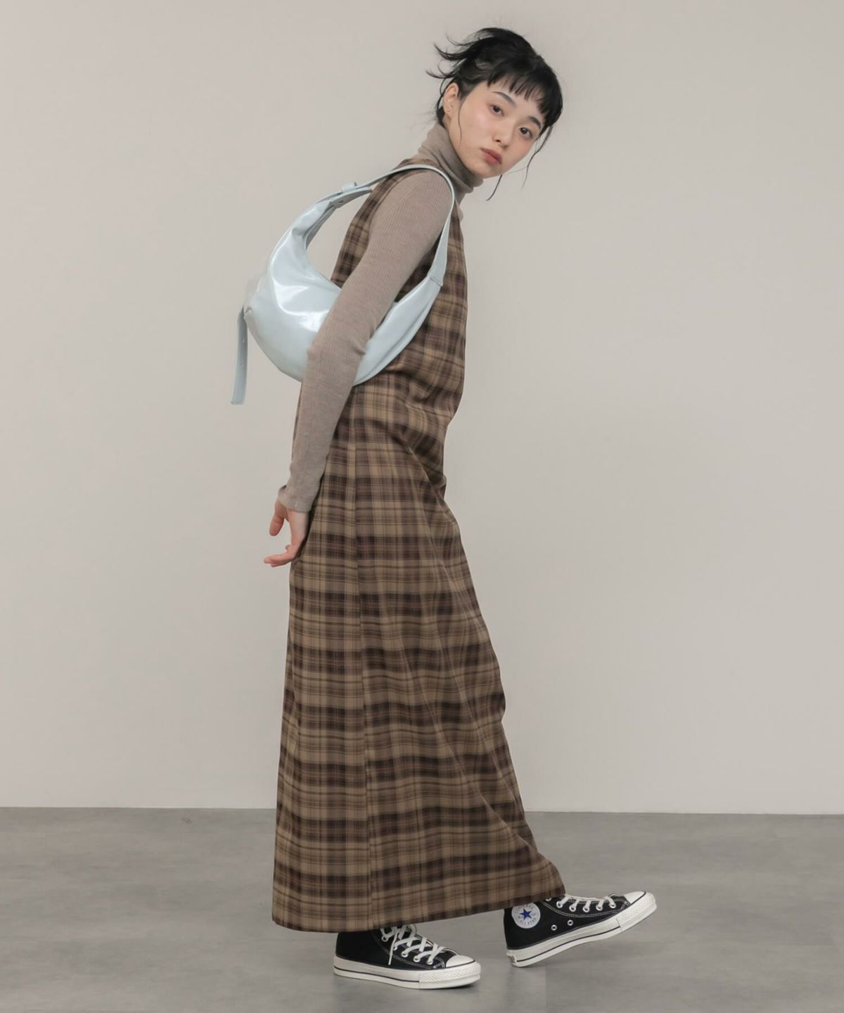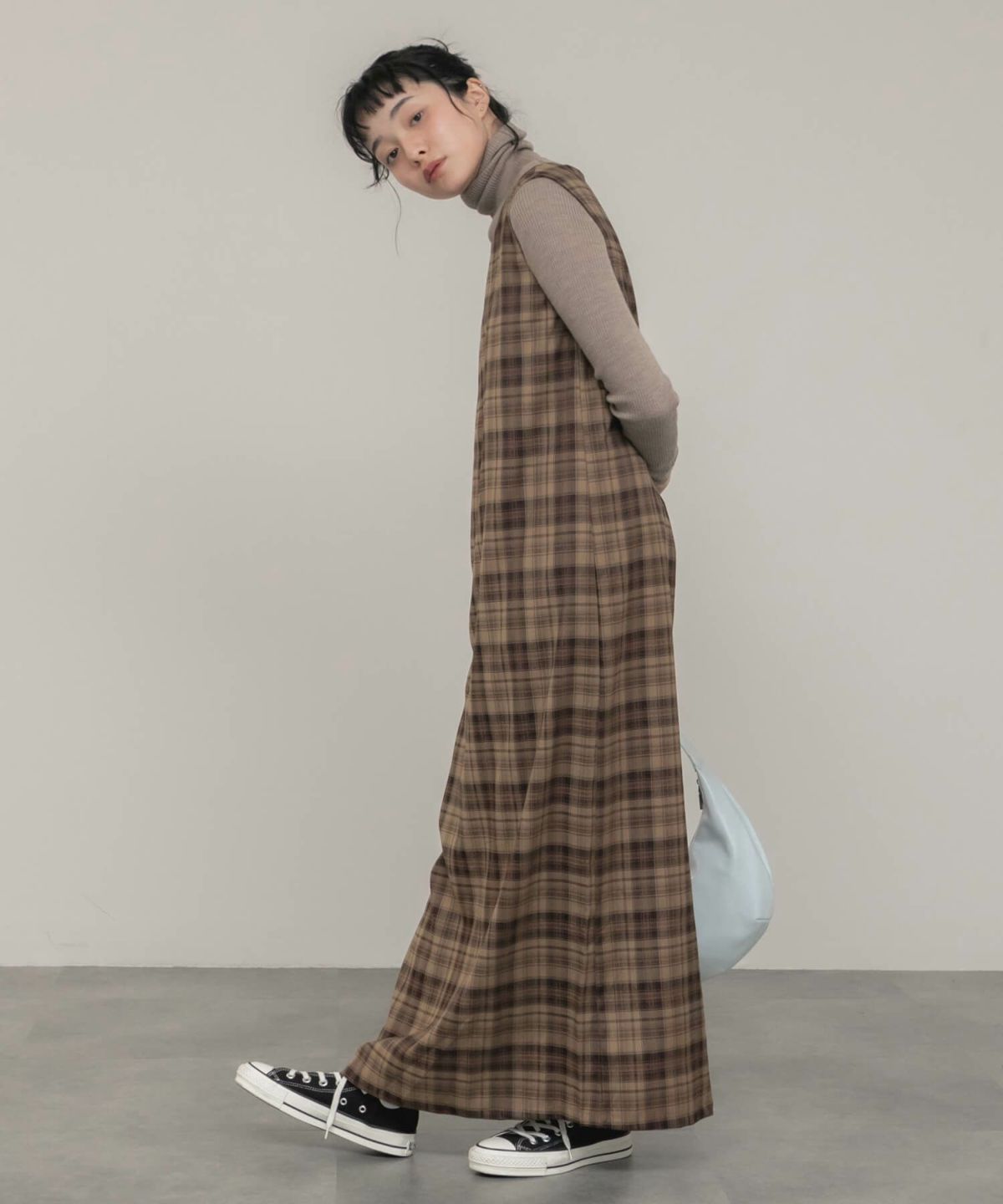 チェック柄が大人可愛いロングワンピース Check Long Dress