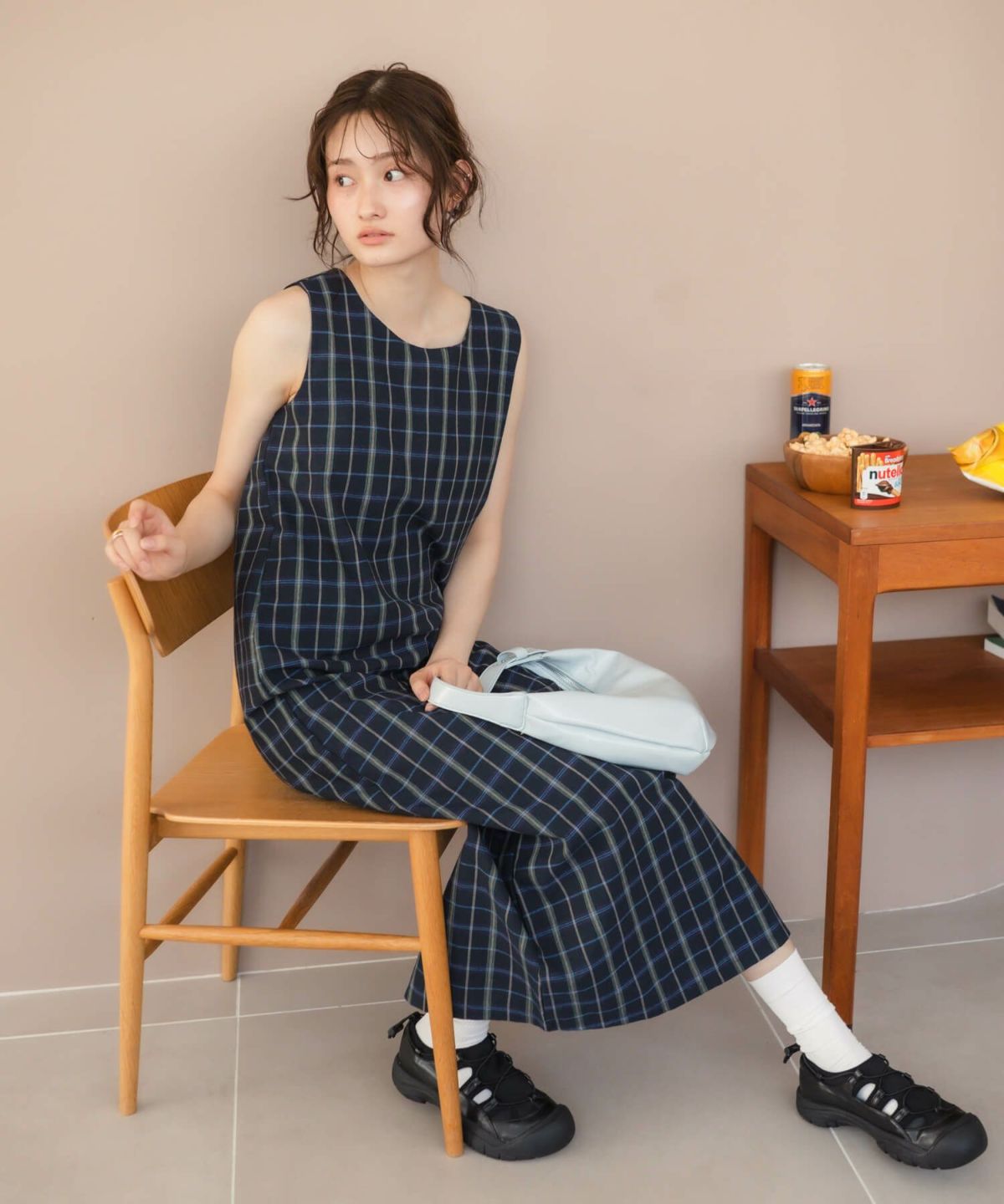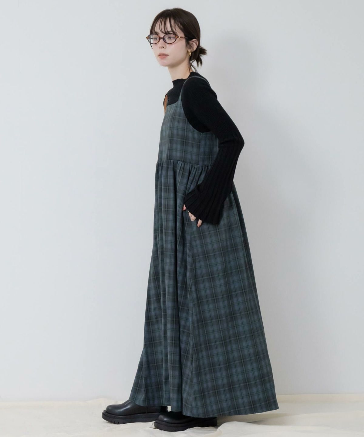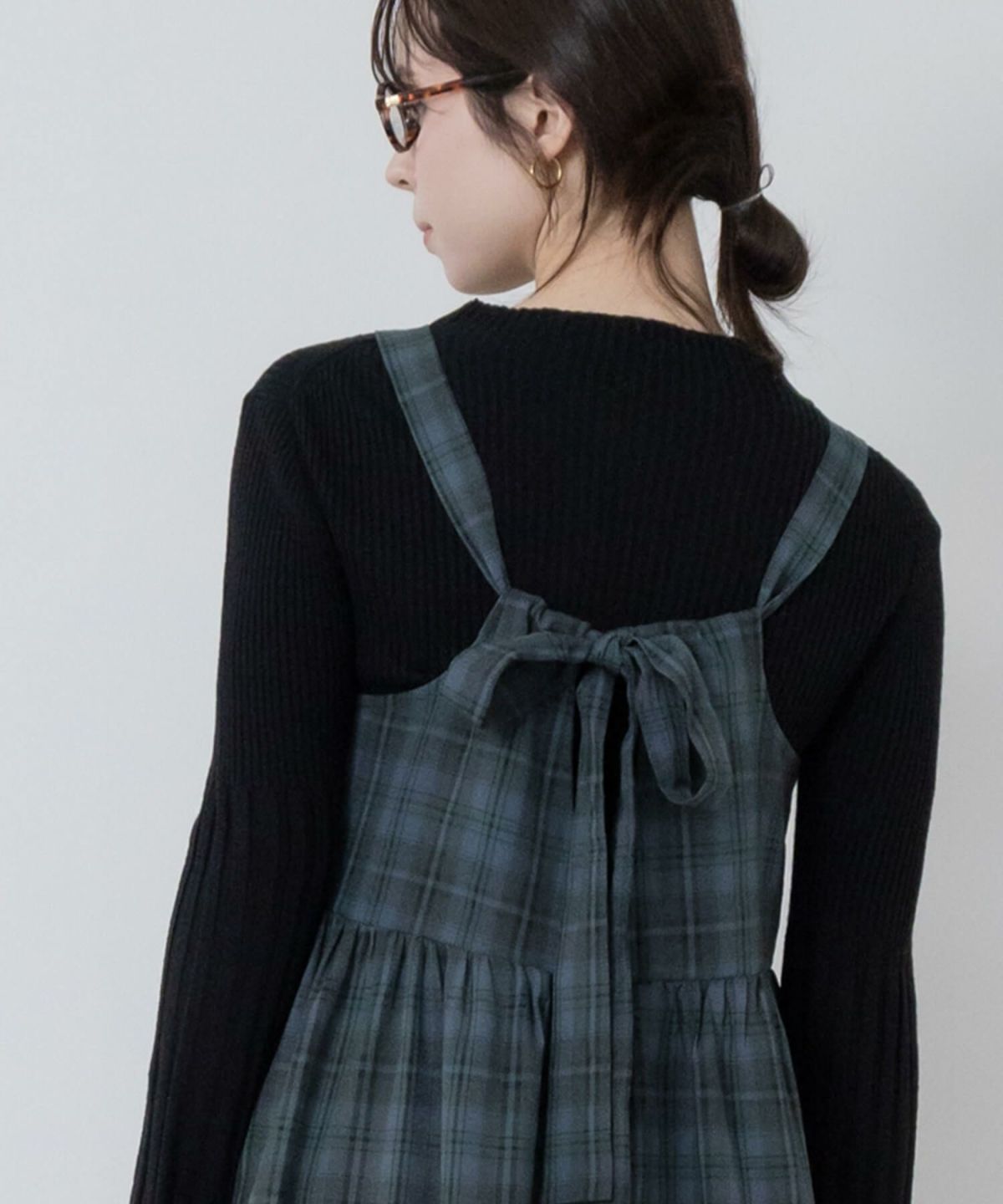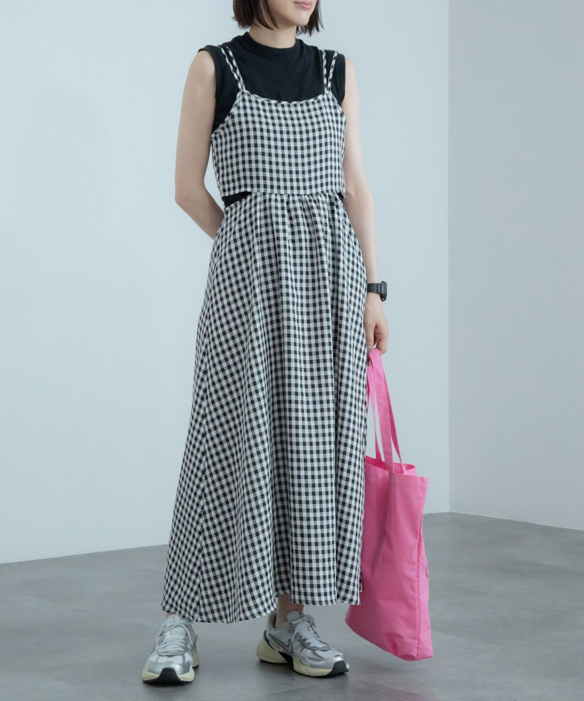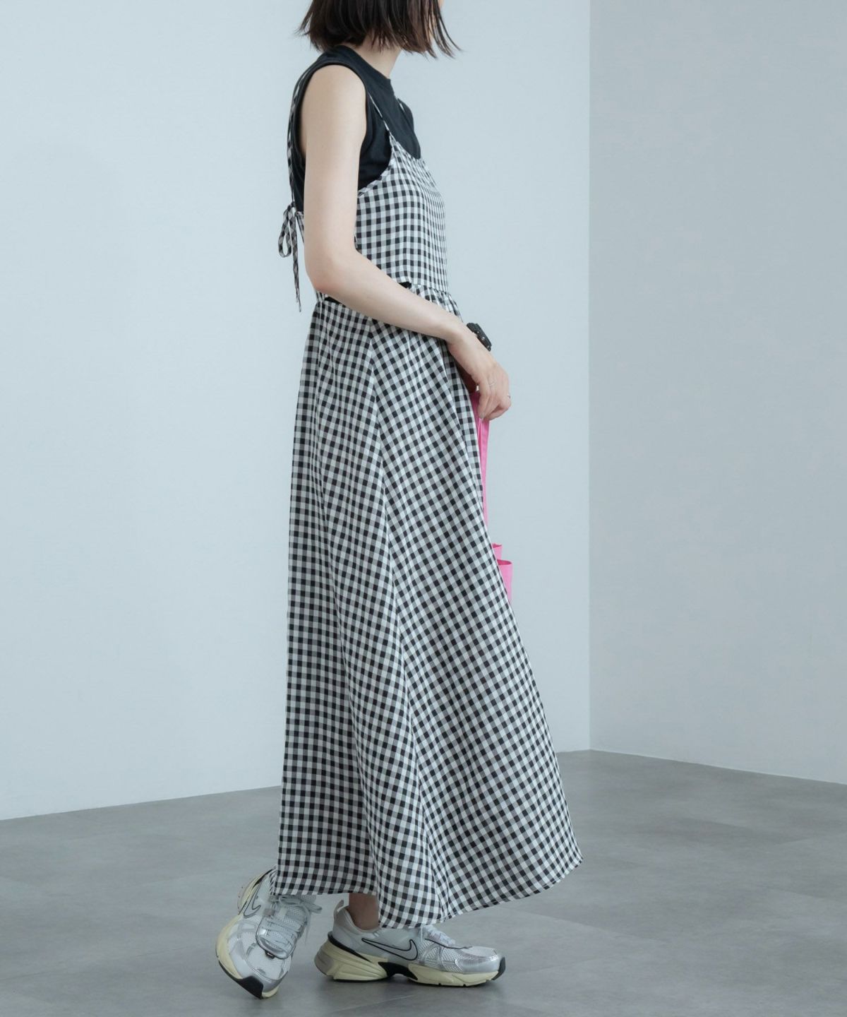 たっぷりなシルエットのチェックキャミソールワンピース Check Tiered Camisole Dress
