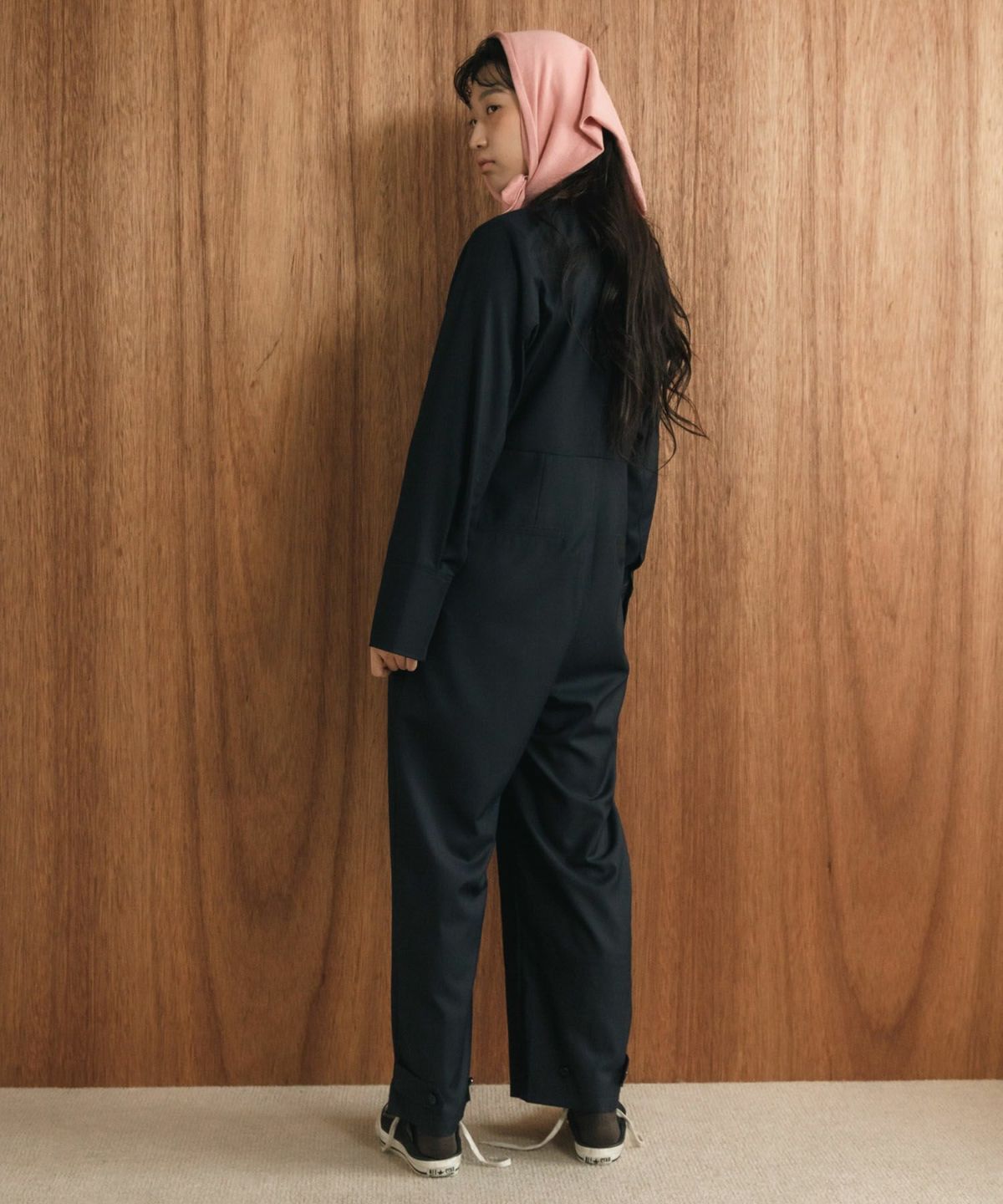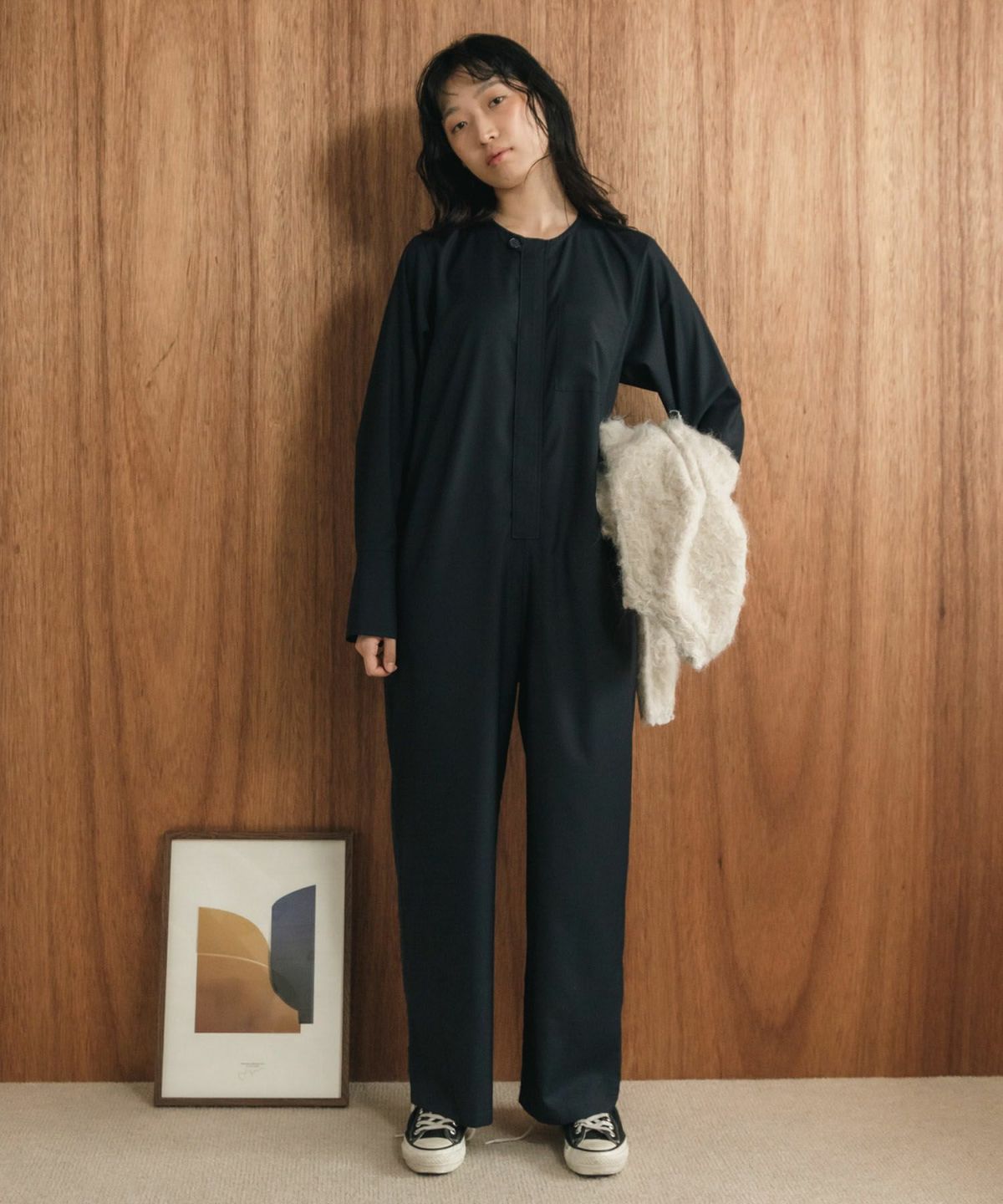 ノーカラーで洗練されたミニマルデザイン1枚で様になる大人のベーシックなオールインワン 【Original】Front Zip All-In-One