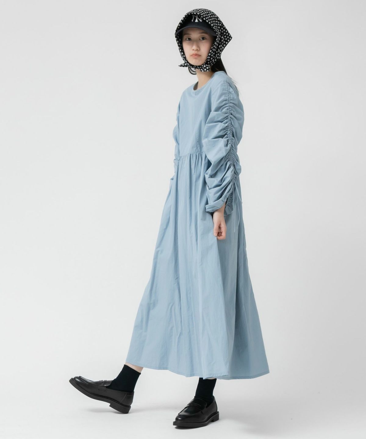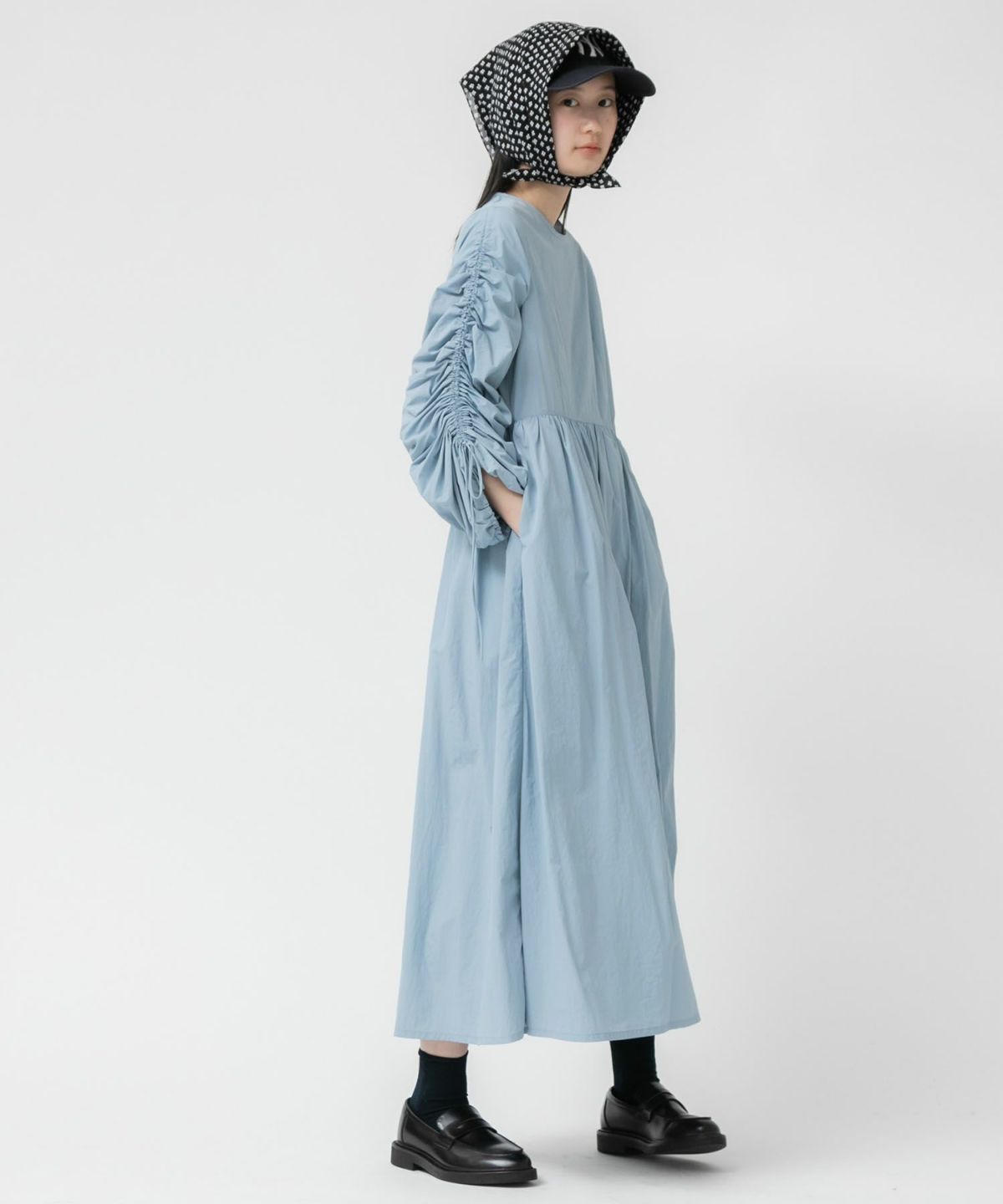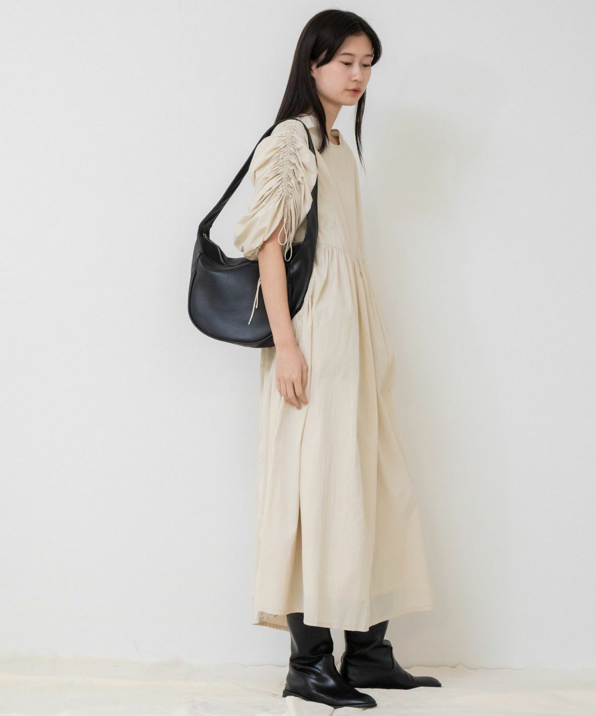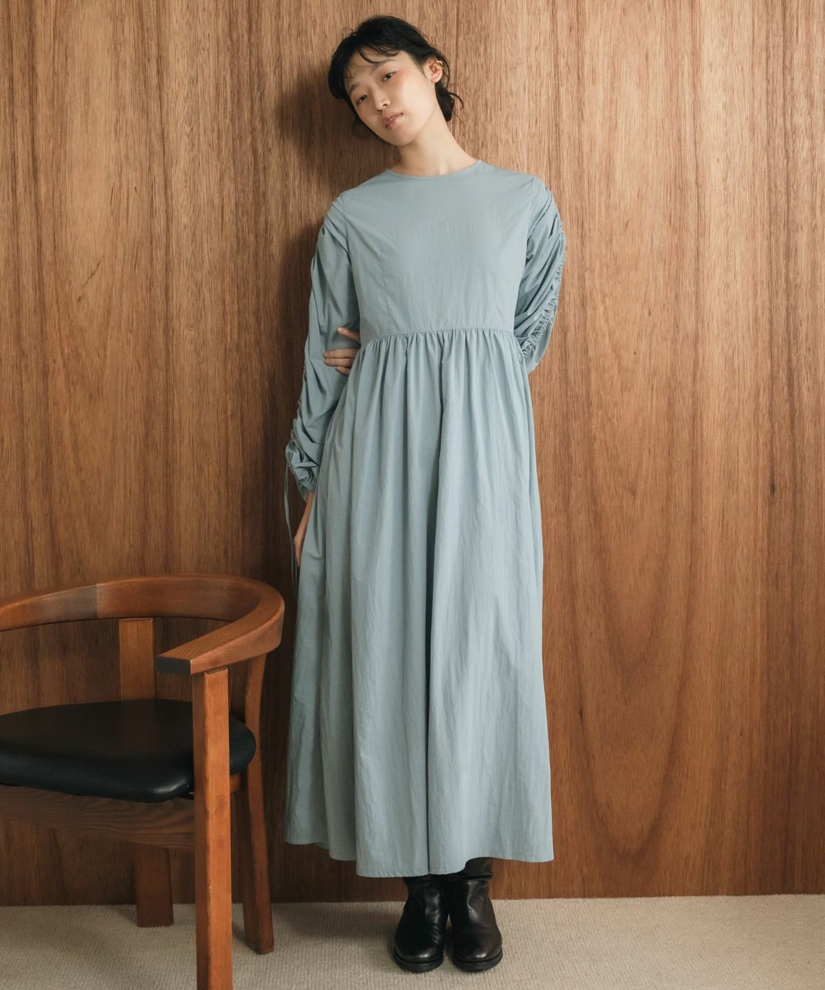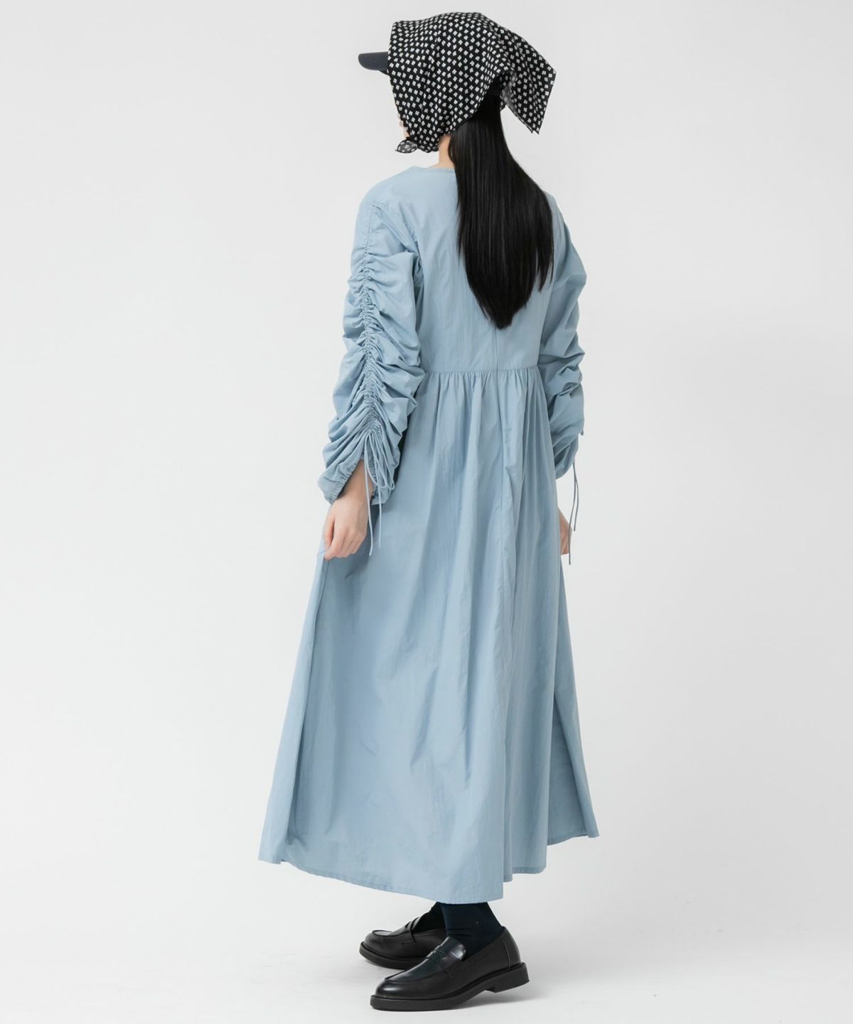 1枚で華やかなトレンドスタイルが完成するギャザーたっぷりのお袖が存在感抜群のワンピース 【Original】2Way Sleeve Shirring Nylon Dress