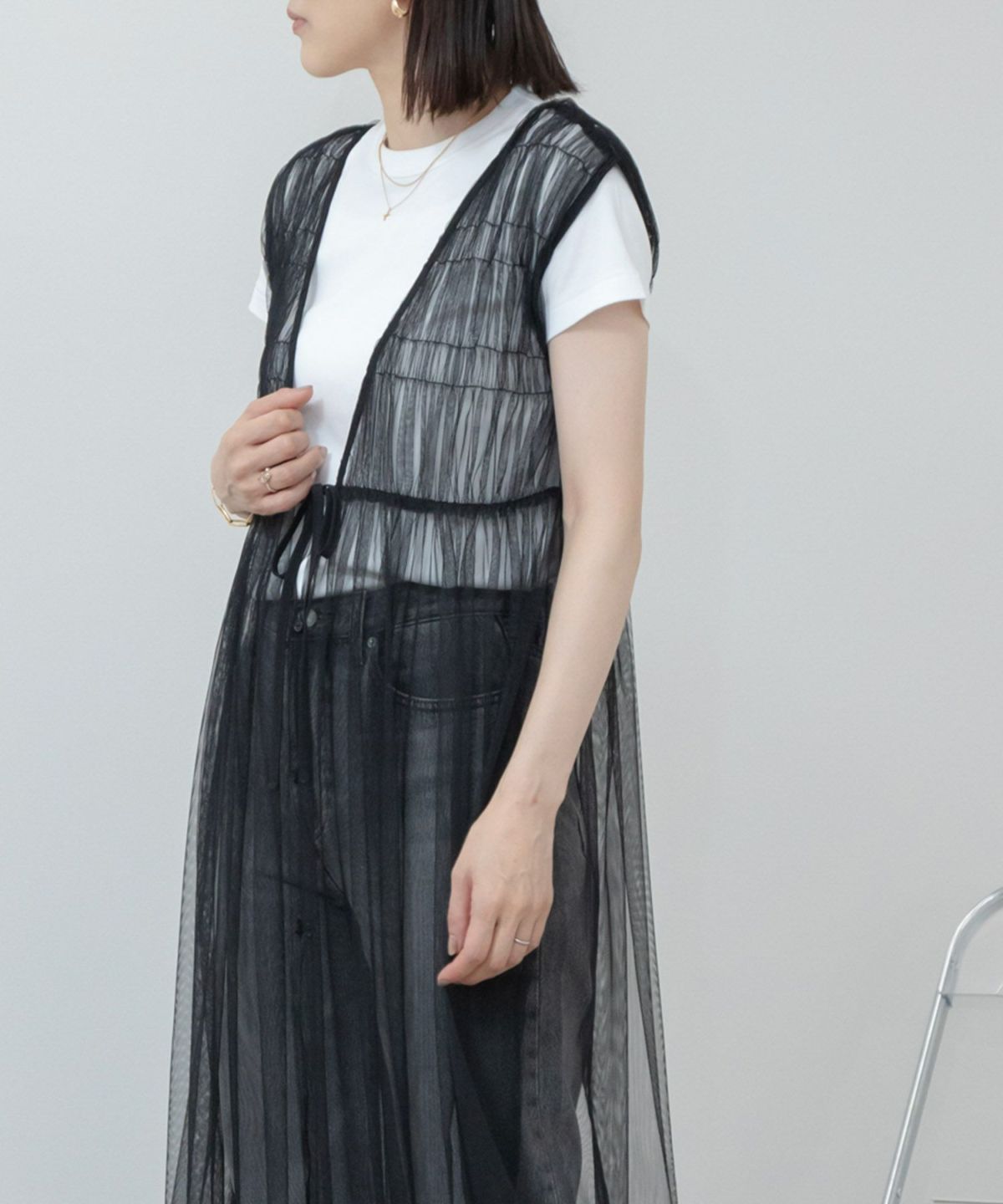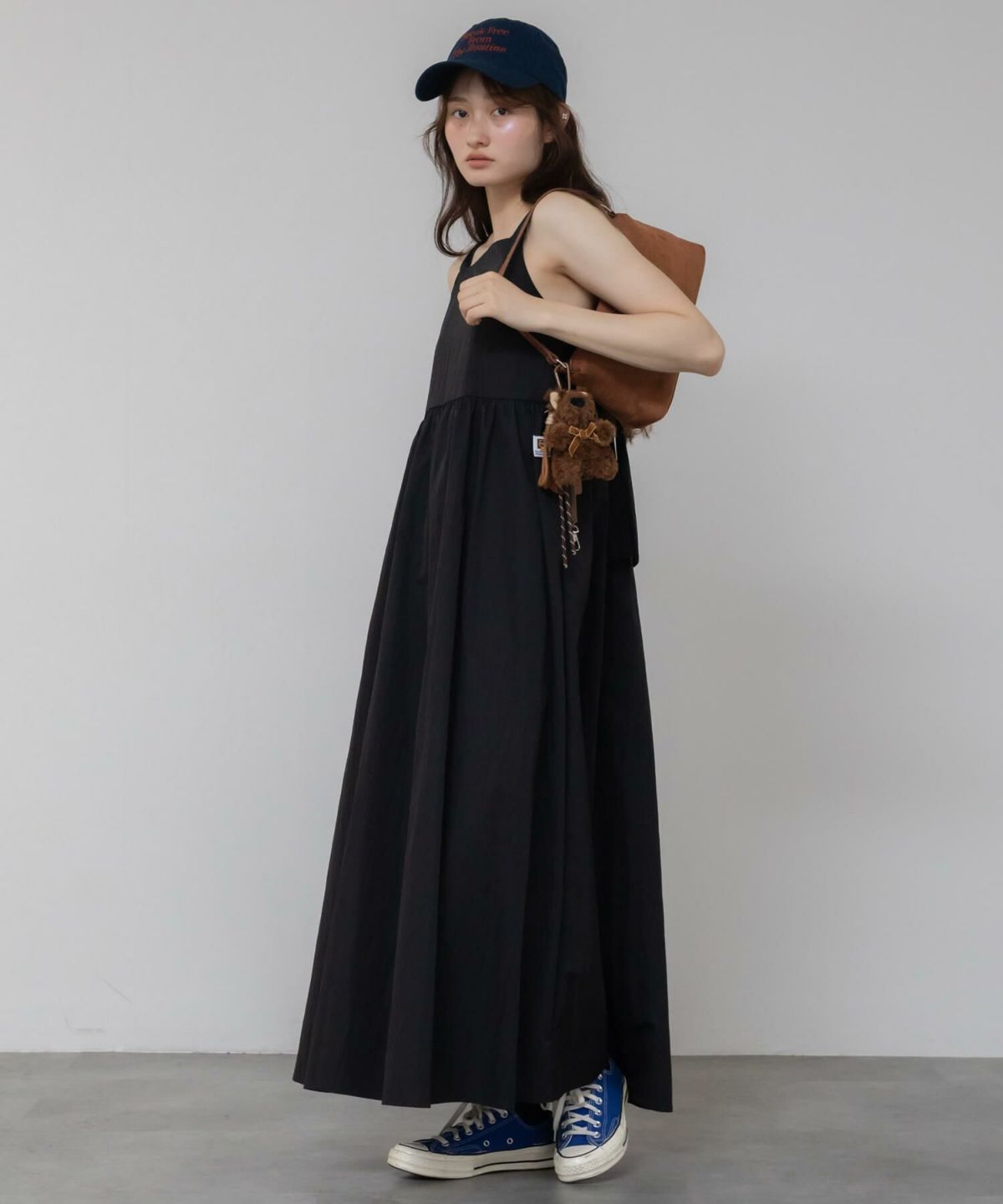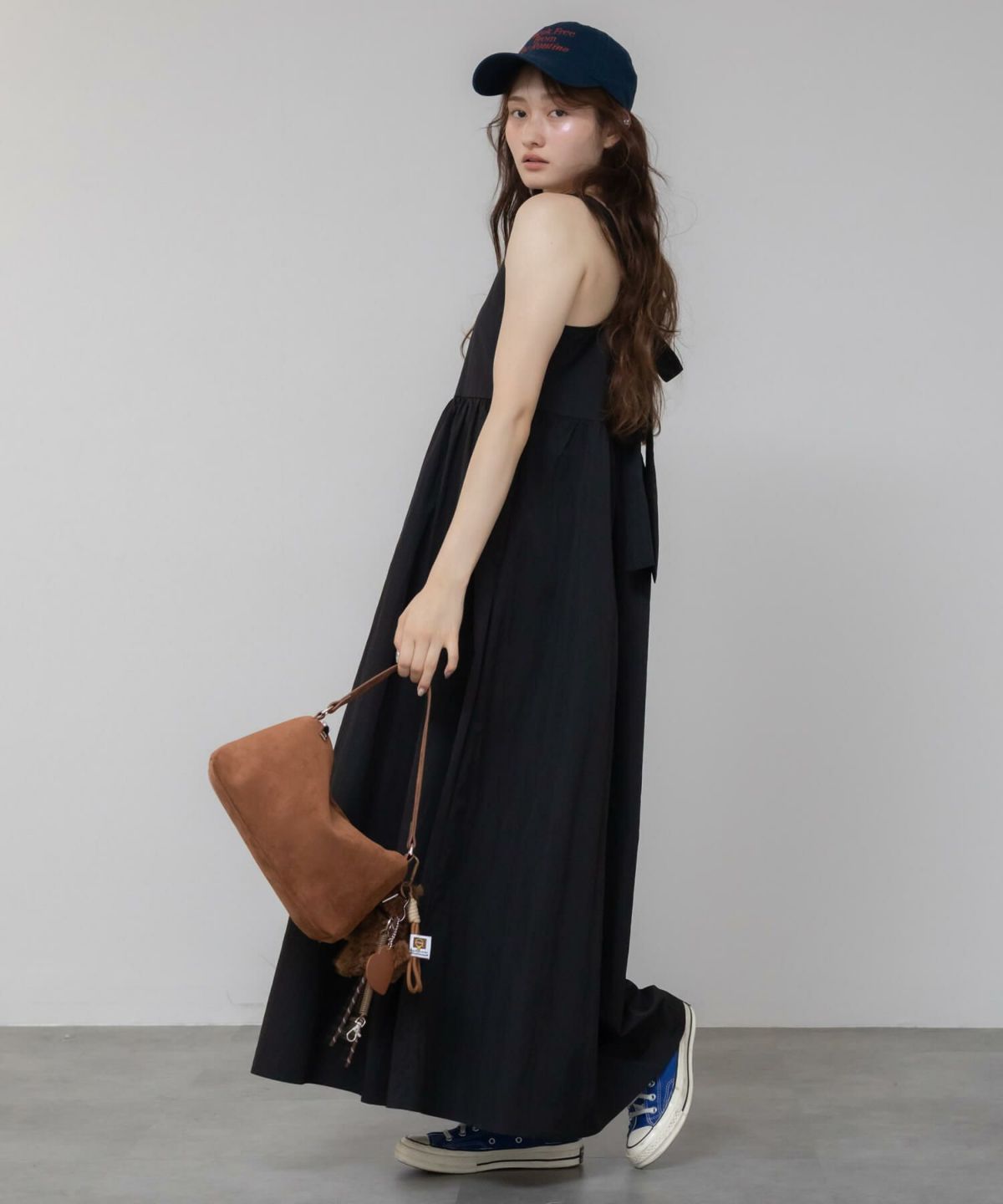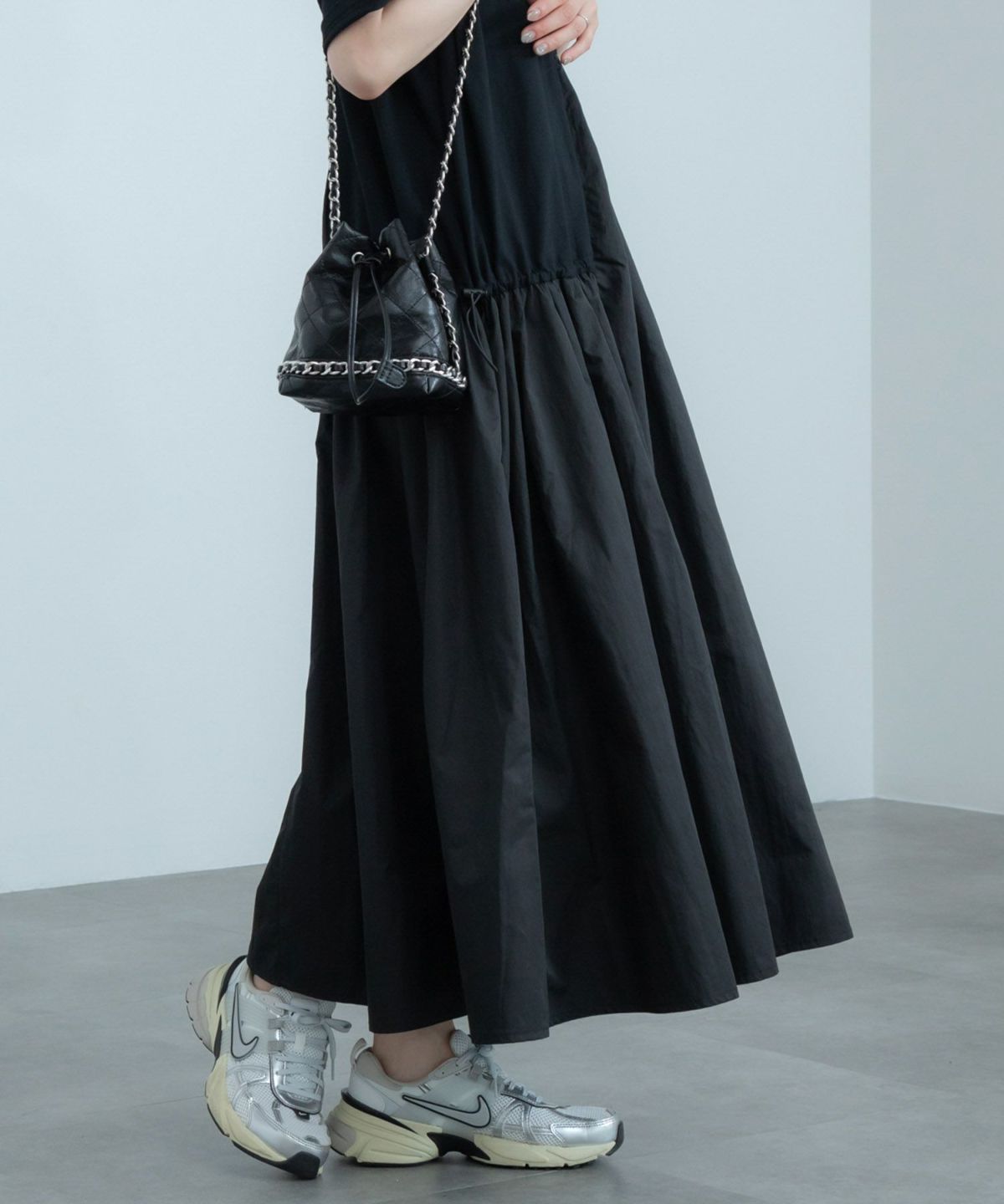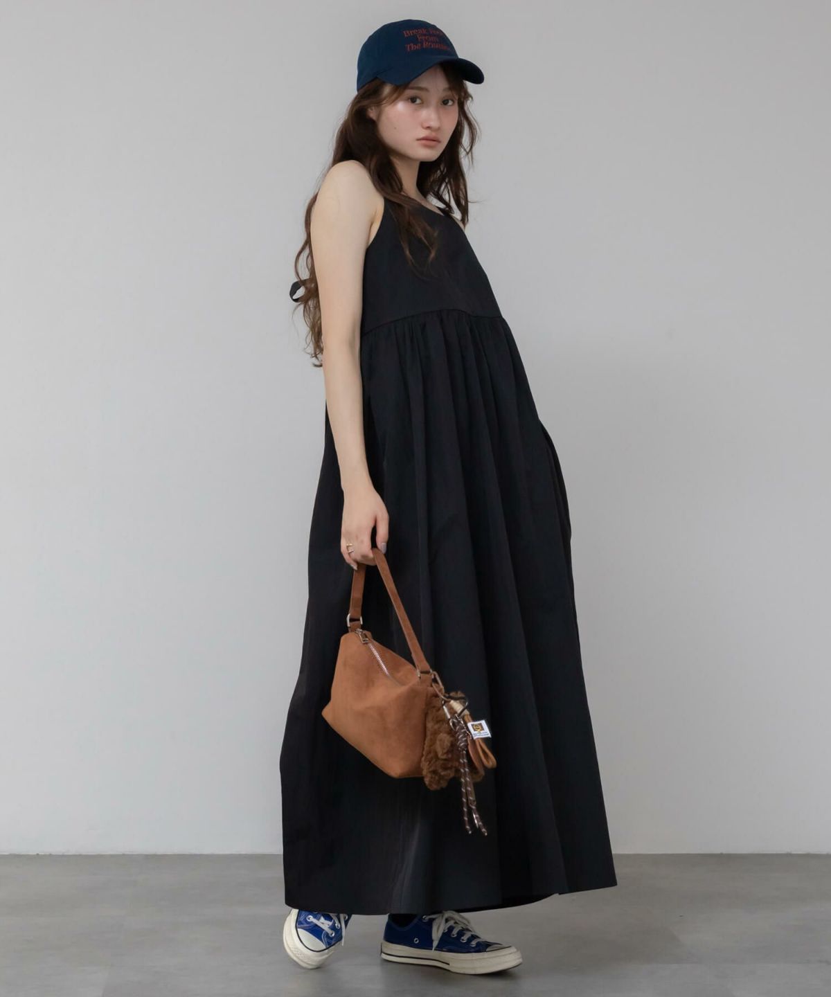 一枚で着られて、重ねても使えるロングワンピース Sleeveless Gathere Dress