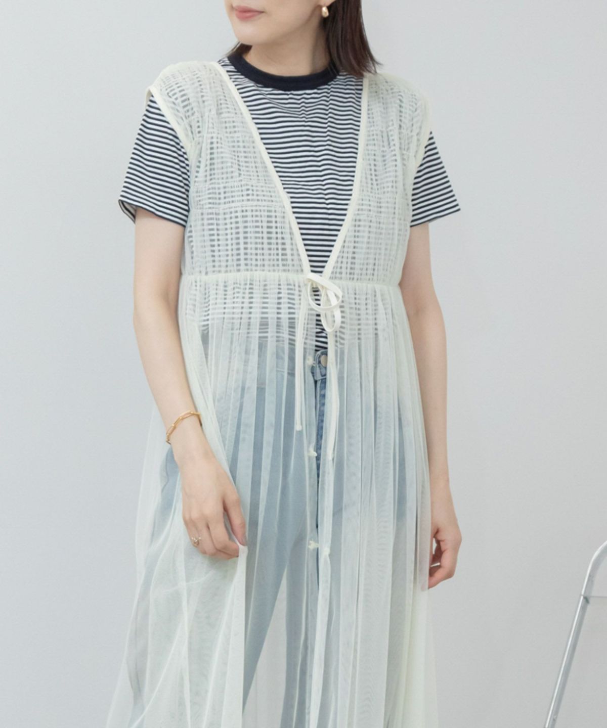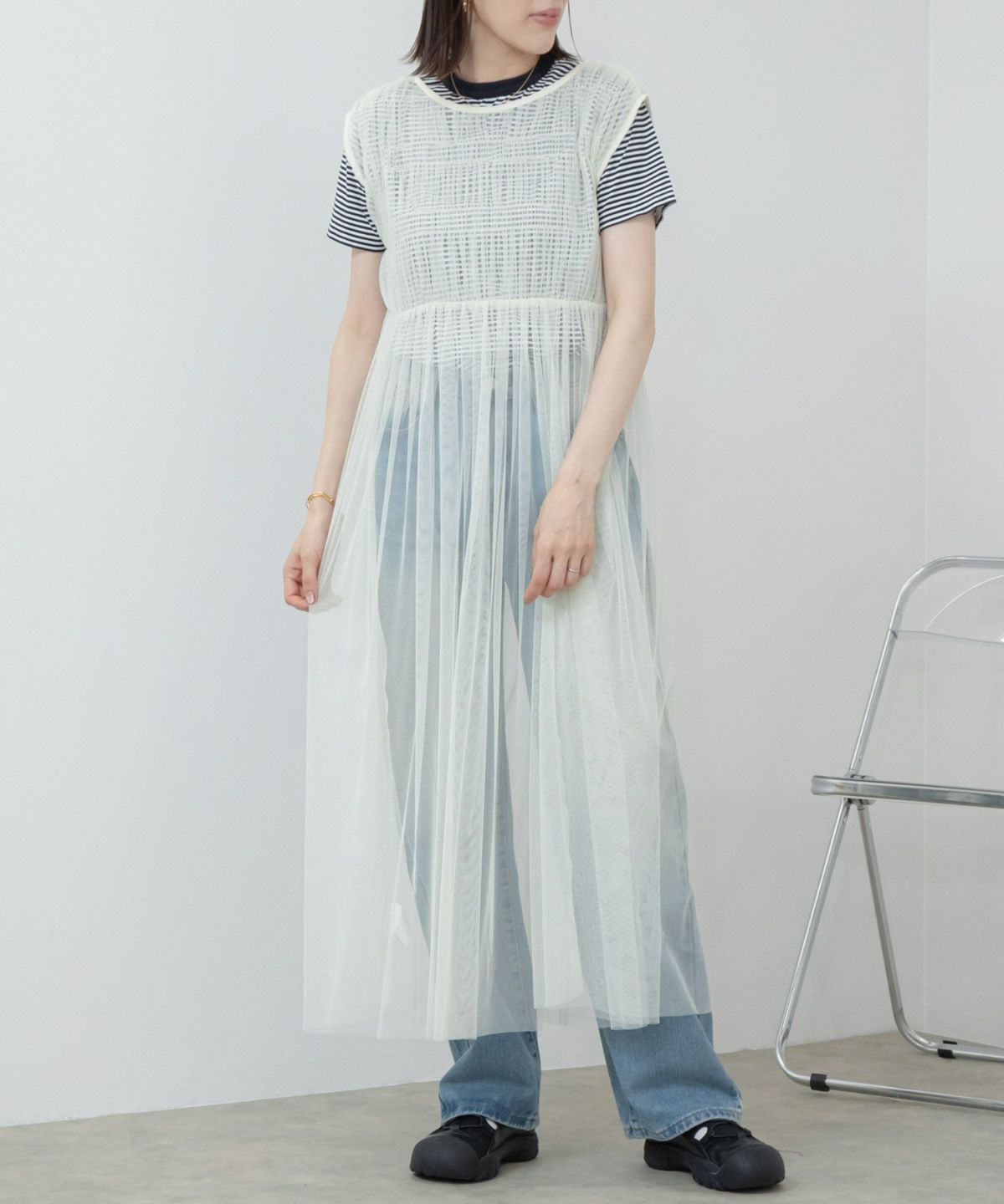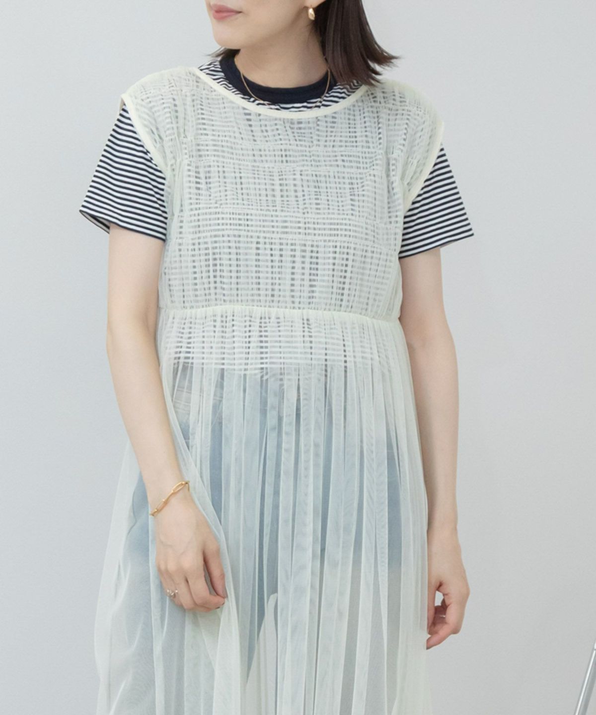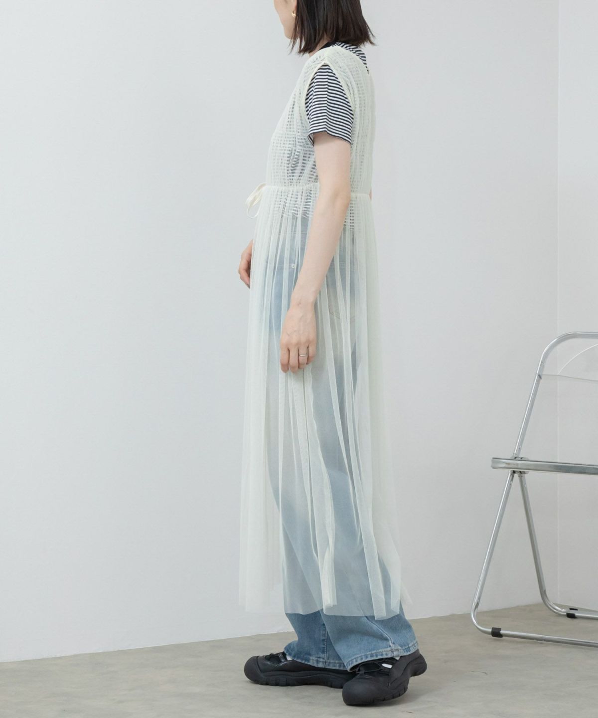 旬なチュールのレイヤードスタイルが楽しめるワンピース 【Hideka Select】Tulle Frill Tiered Cami One Piece