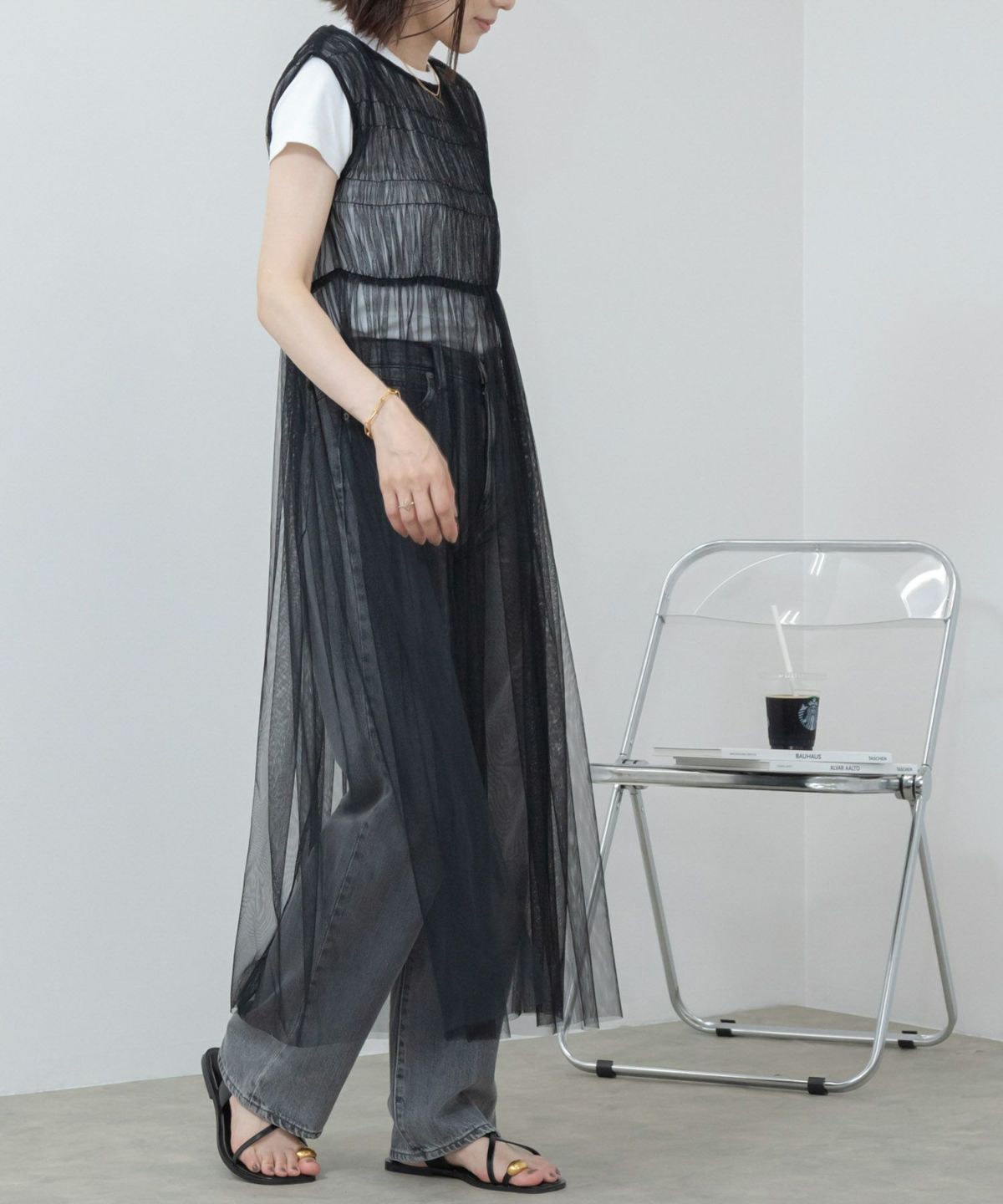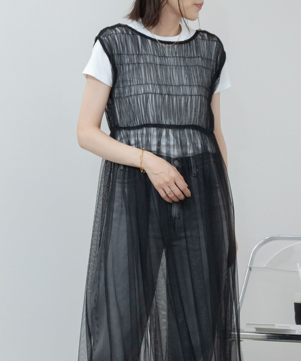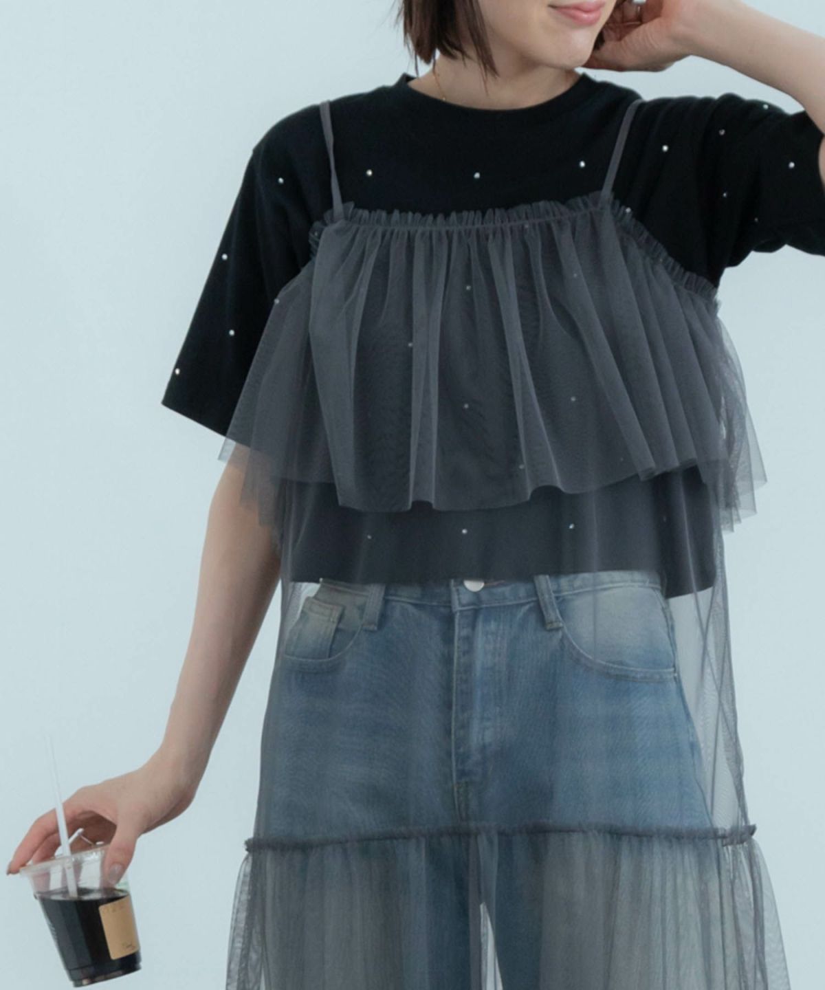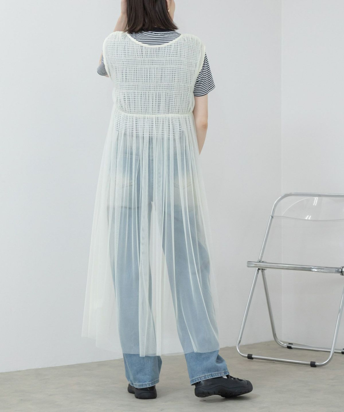 前後2wayの変化を楽しめるトレンド感たっぷりなチュールワンピース 2Way Tulle Dress