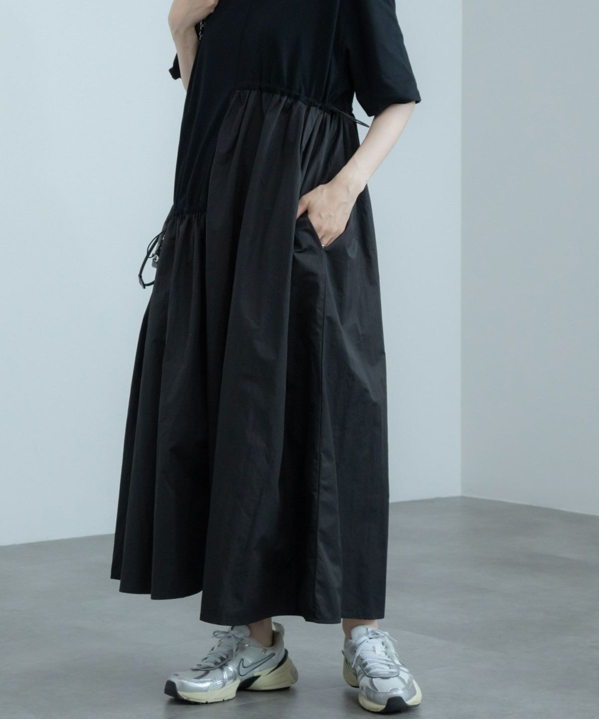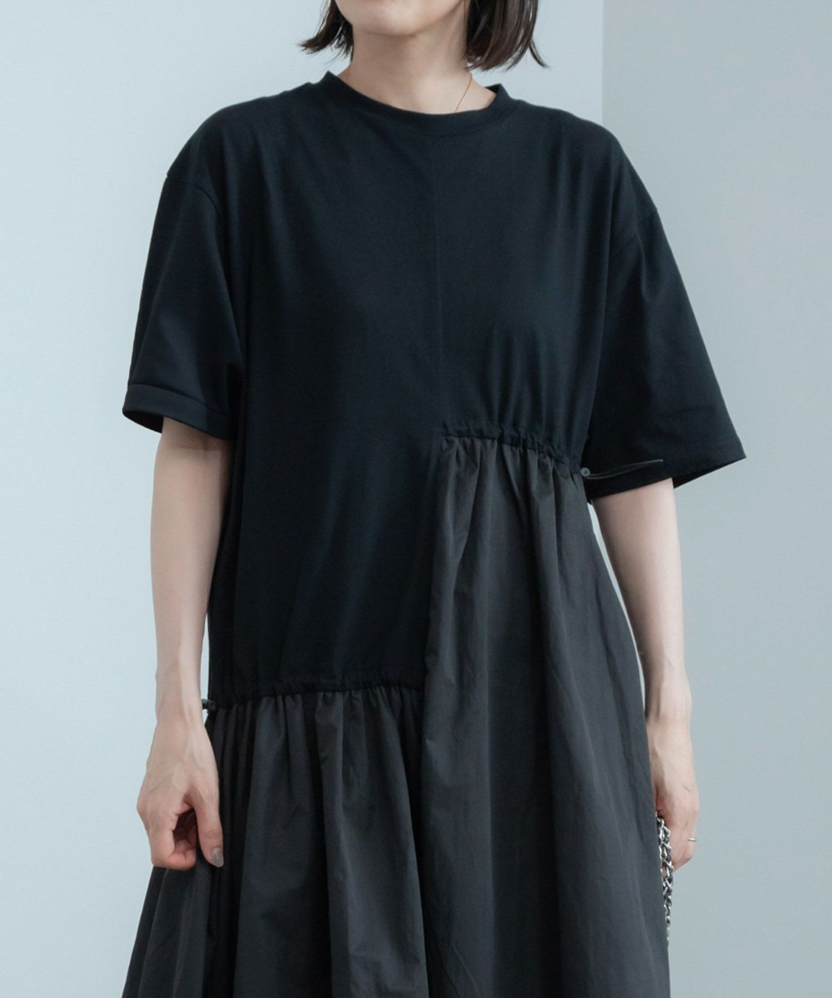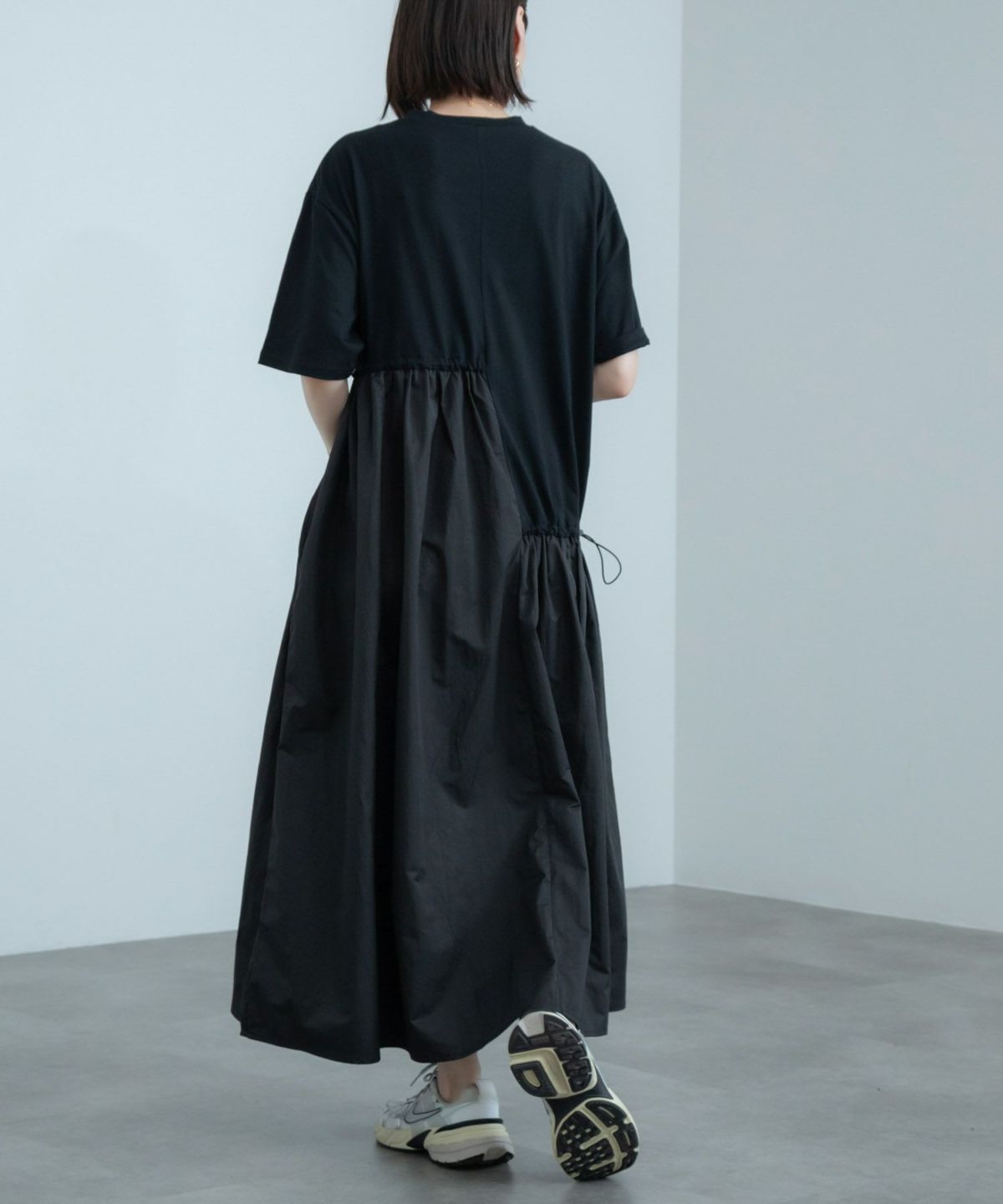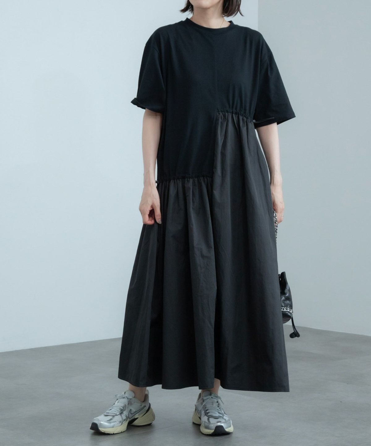 アシンメトリーなドロストデザインがポイント。ドッキングワンピース Docking Short Sleeve Maxi Dress