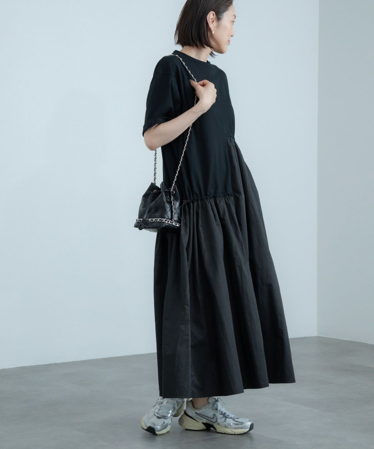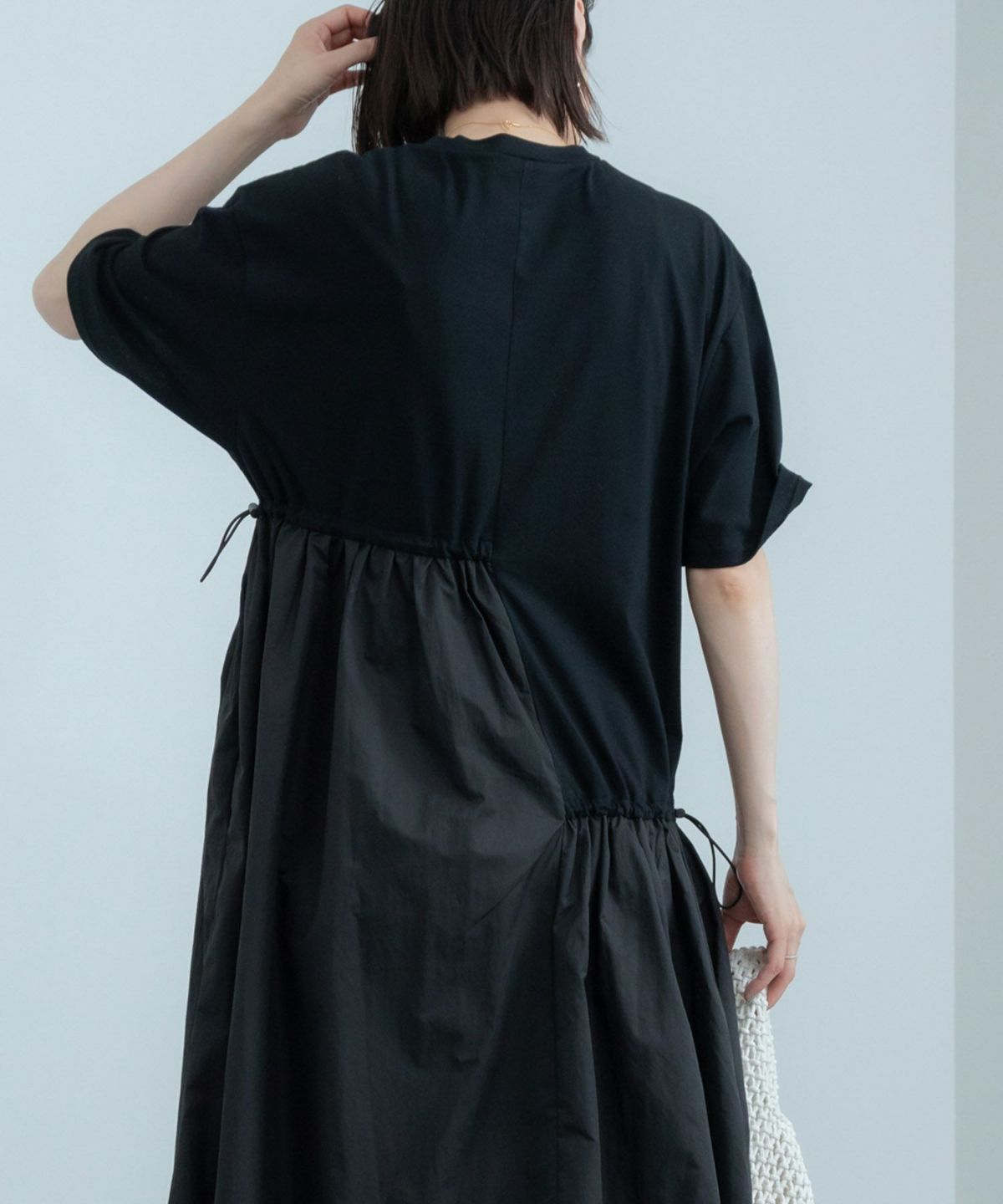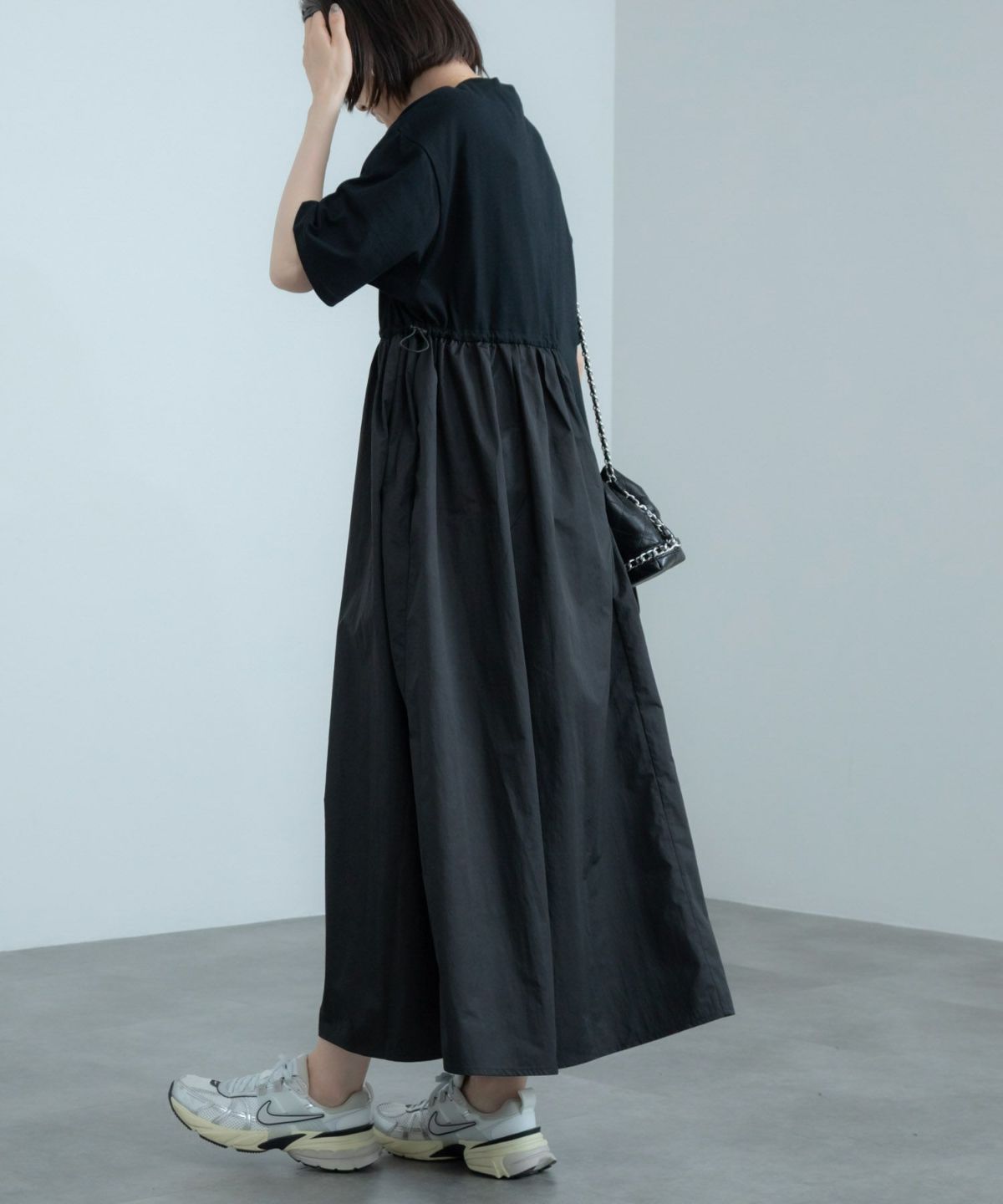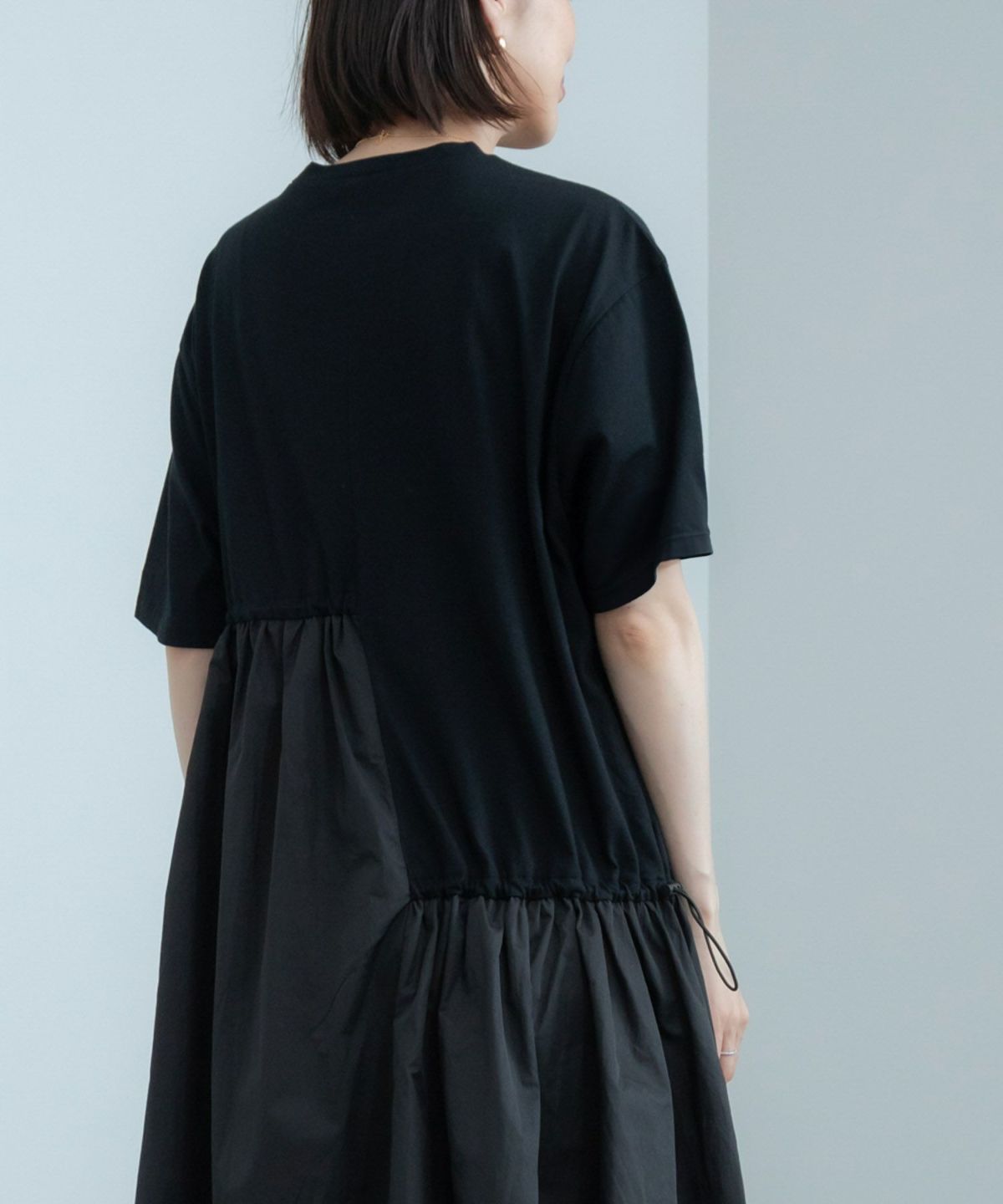 アシンメトリーなドロストデザインがポイント。ドッキングワンピース Docking Short Sleeve Maxi Dress