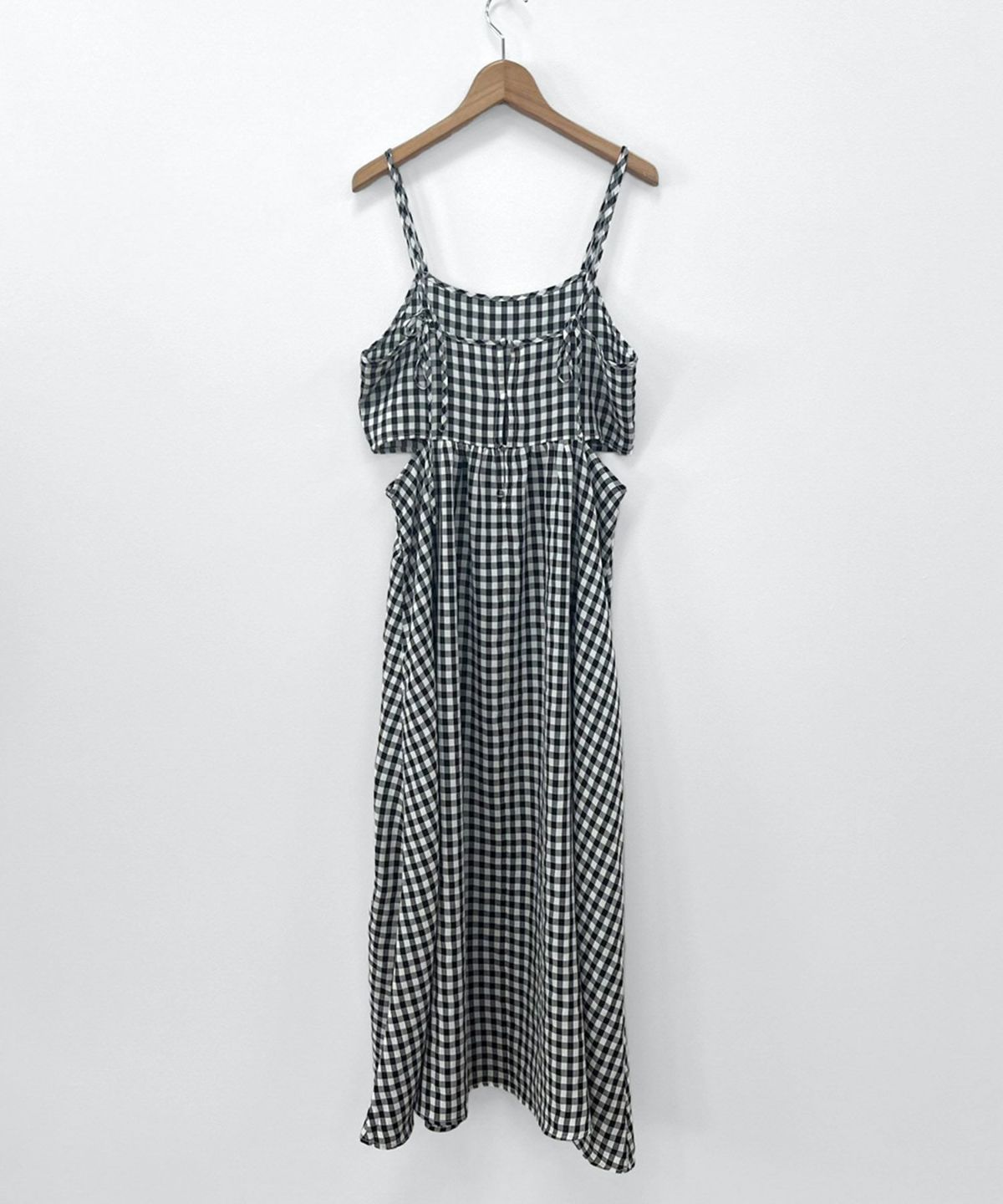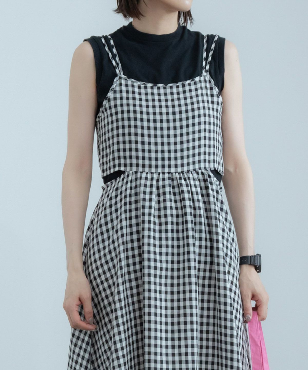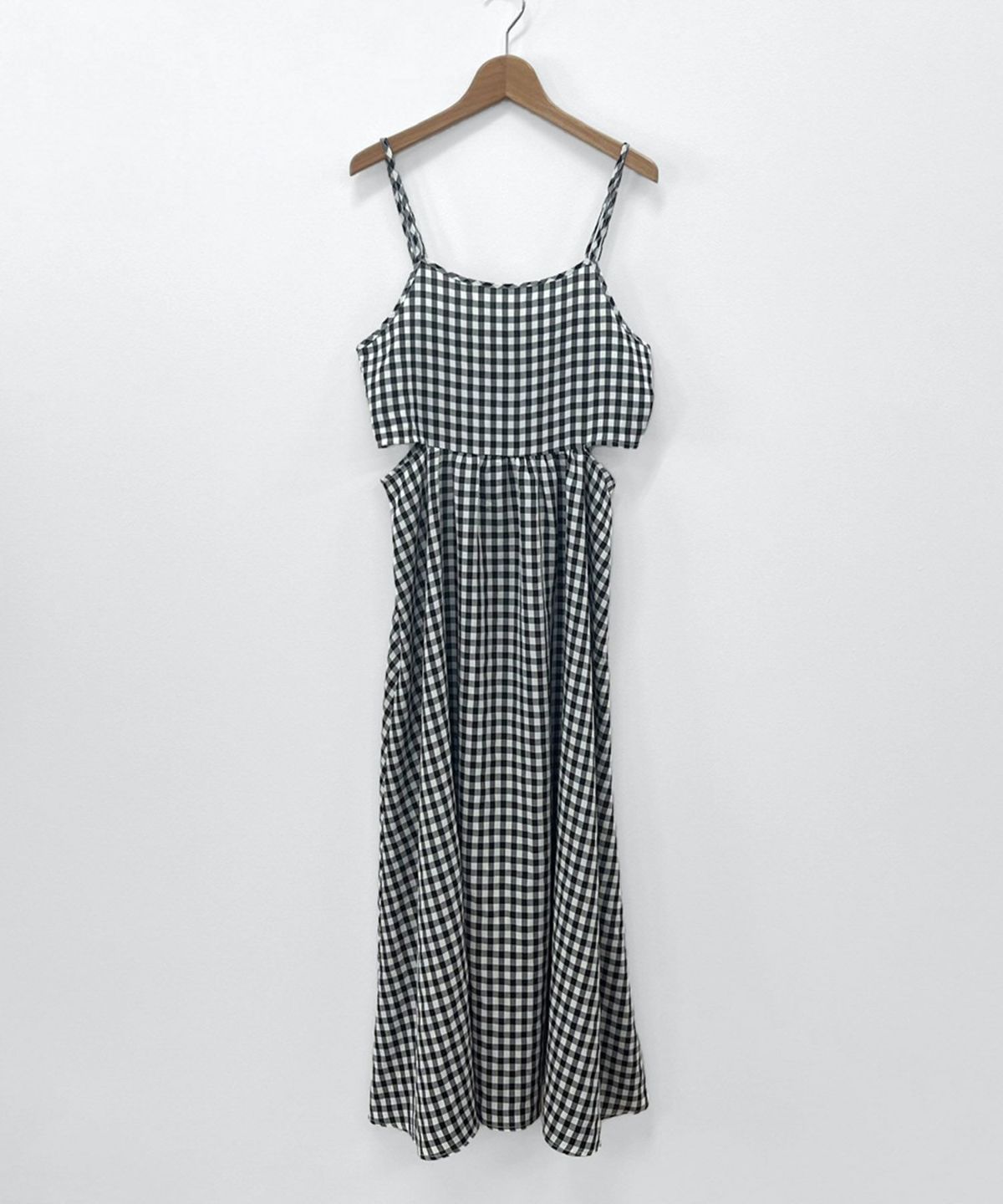 トレンドライクなウエストカッティングキャミソールワンピース Gingham Check Cutting Cami Dress