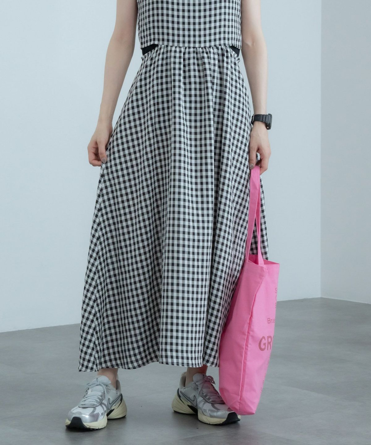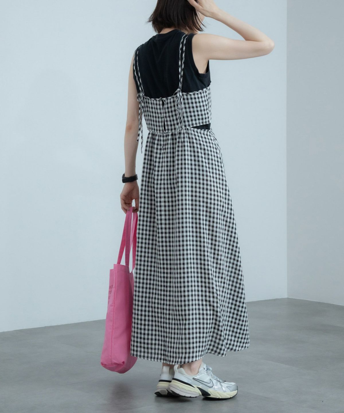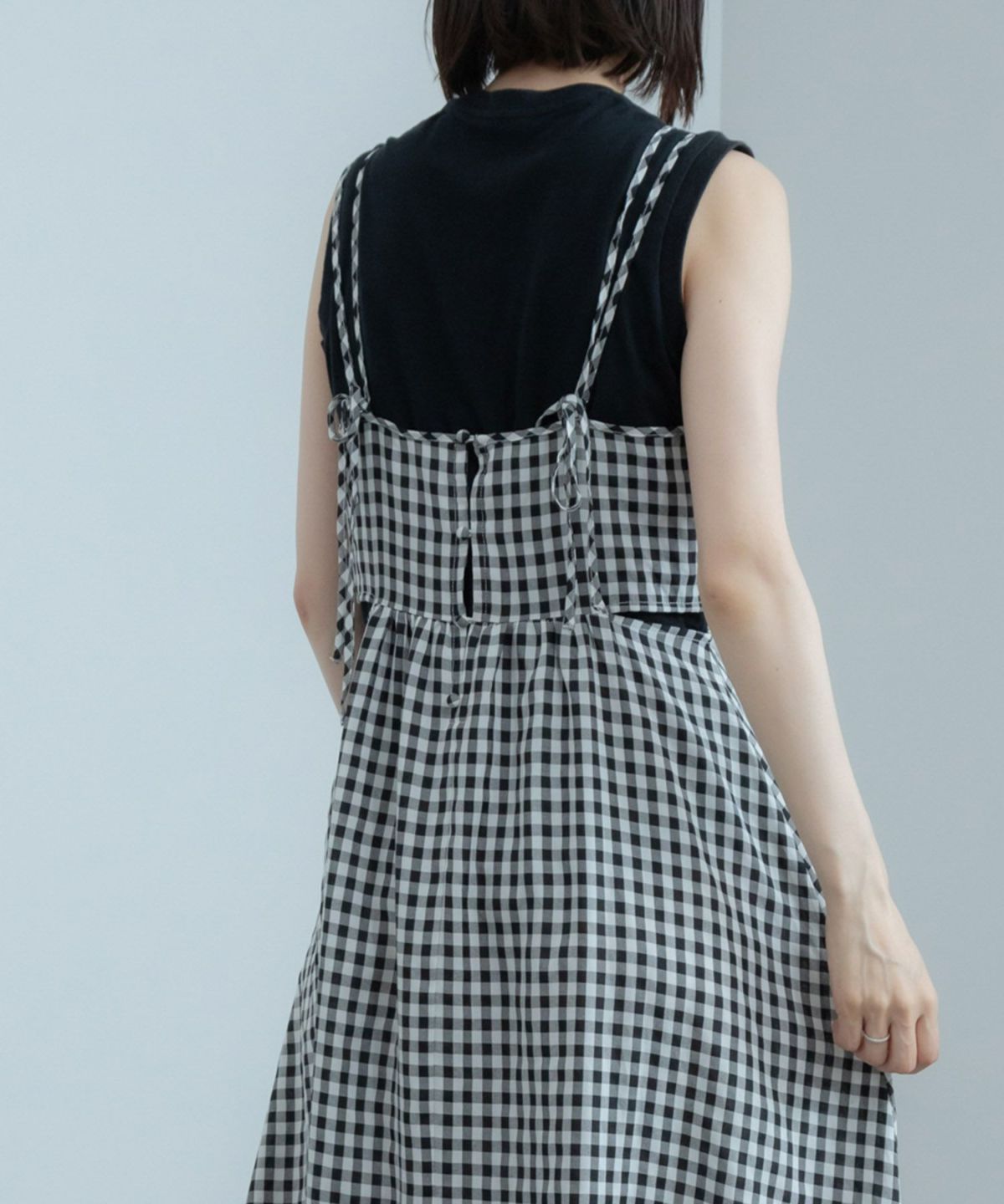 トレンドライクなウエストカッティングキャミソールワンピース Gingham Check Cutting Cami Dress