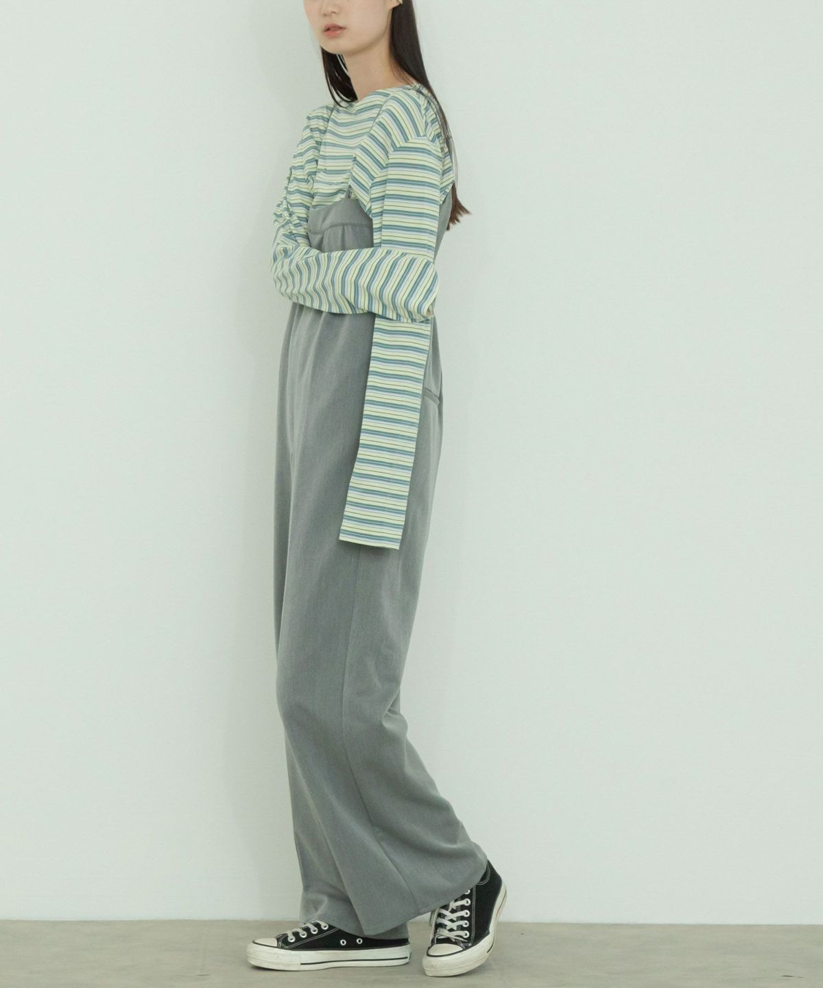 レイヤード次第で季節を問わず活躍するオールインワン。 U Neck All In One