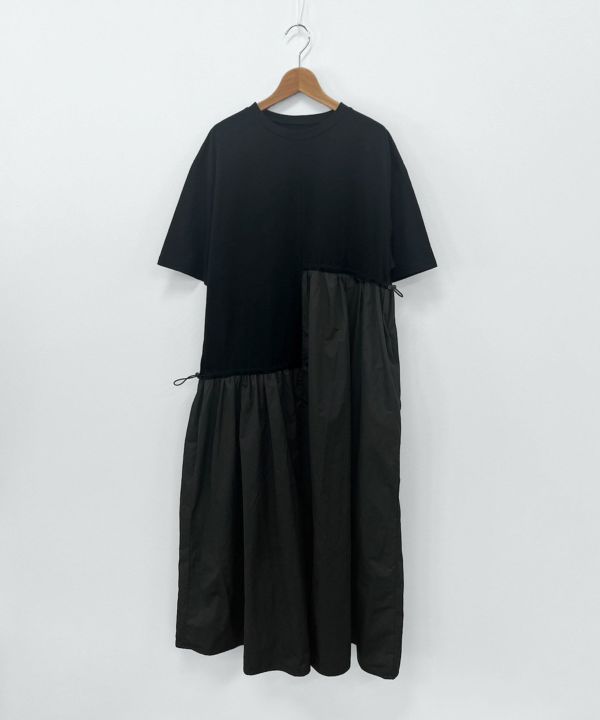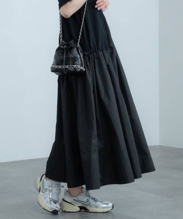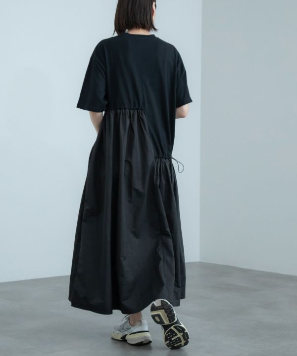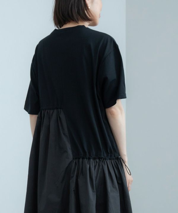 着心地の良いカットソーとハリ感のあるタフタ素材を切り替えた目を惹くデザイン。