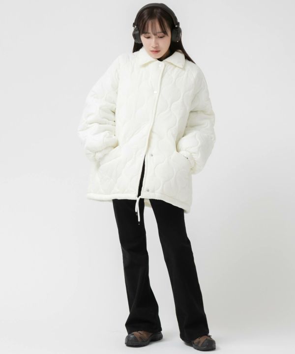 表地は、防風・保温性に優れたポリエステル、内側は柔らかく暖かみのあるシャギーボアを使用。キルティング加工を施しているので着ぶくれがしにくいのも嬉しいポイント。