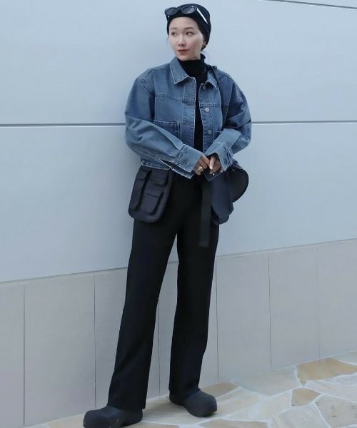 ショート丈でスカートにもパンツにも合わせやすく腰位置を高く見せることで、スタイルアップ効果にも◎