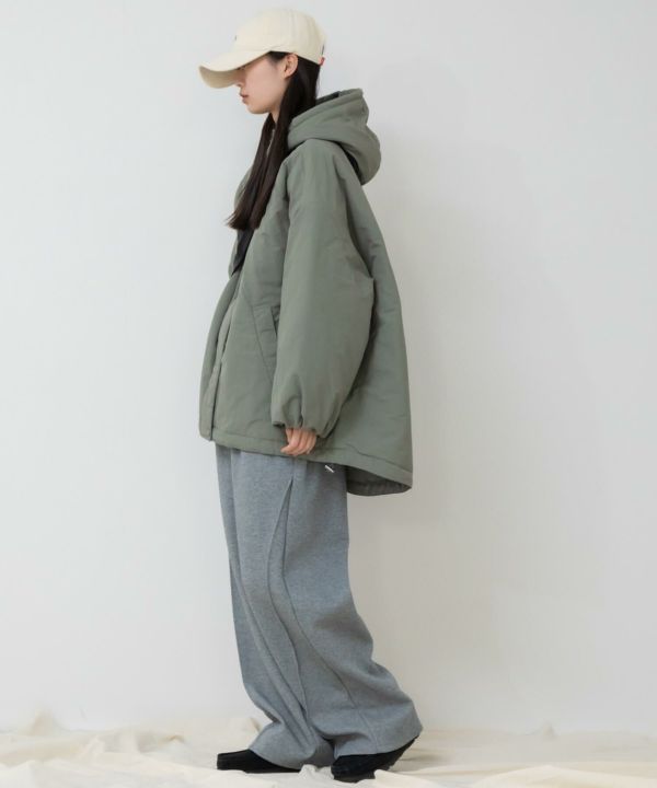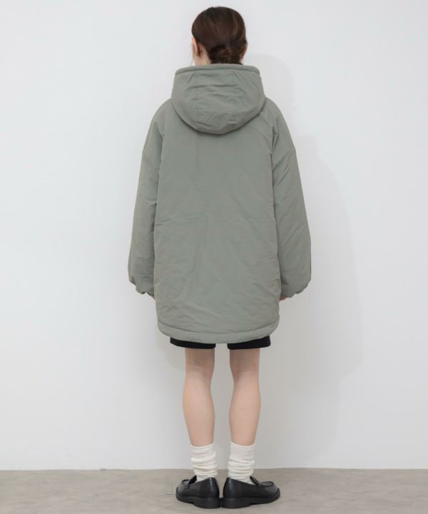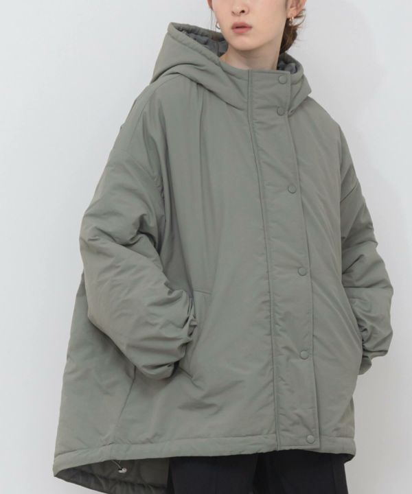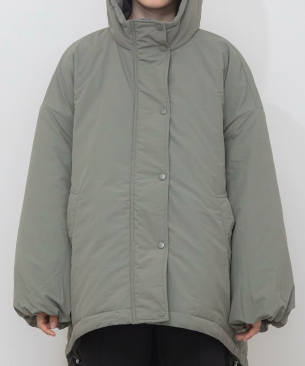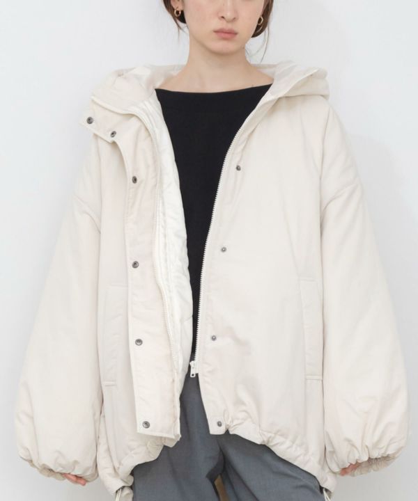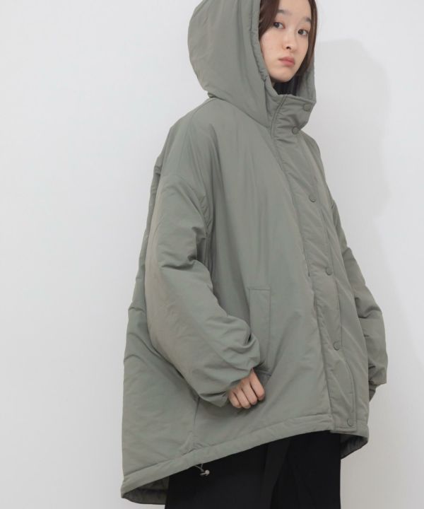 内側がウェーブキルトになっていて綿がずれにくく保温性も◎程よくオーバーサイズで軽さのあるアウターはシンプルなデザインで着回ししやすい一枚です♪