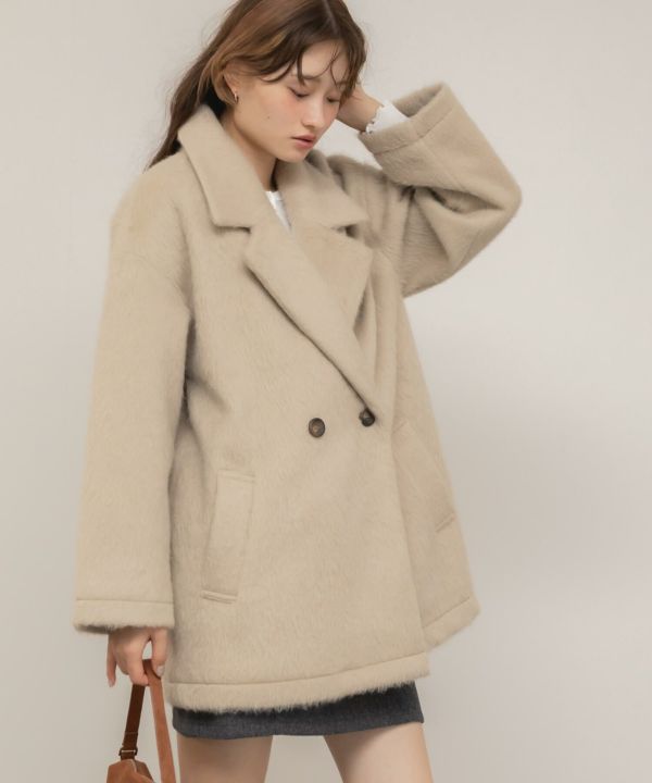 毛足のあるシャギー素材がシーズンムードを高めるアウター。