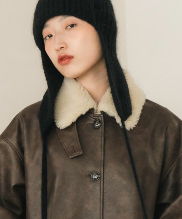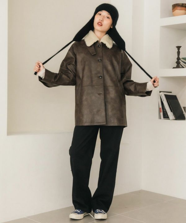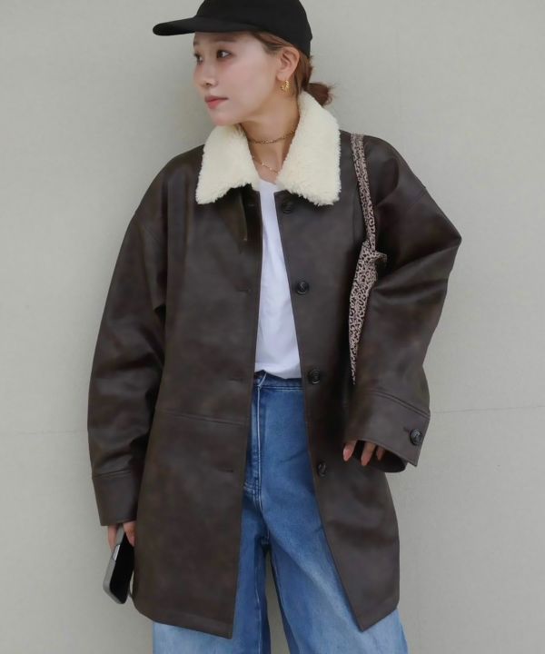 取り外し可能な配色のショートファー衿は顔周りに華やかさをプラスしてくれます◎ファー襟を取り外して、シンプルにステンカラーのレザージャケットとしても着こなし可能。