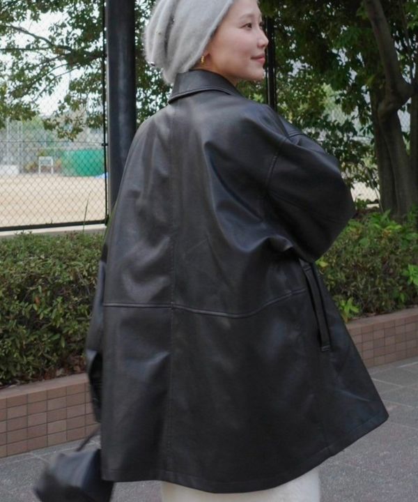 ハードになりがちなレザーアイテムをゆったりとした身幅とドロップショルダーでラフにカジュアルダウンして着用できるよう仕上げました。