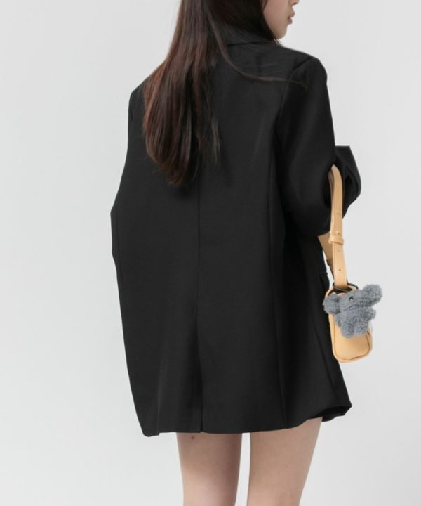 クラシックなラペルデザインとシングルボタンが上品な雰囲気を演出します。