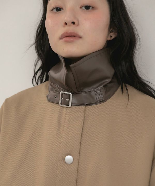 襟部分はしっとりとした質感のフェイクレザーで