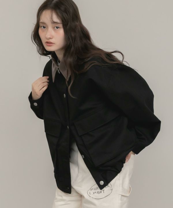 裾にはさりげないギャザーを施し、軽やかに羽織れる一枚に仕上げています。
