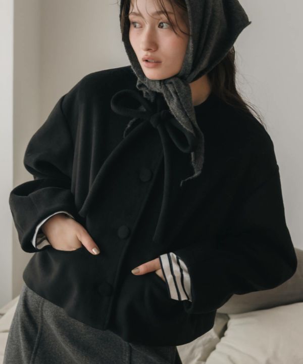 レディライクなムードを纏えるショート丈ウールコート 【Original】Ribbon Tie Short Coat