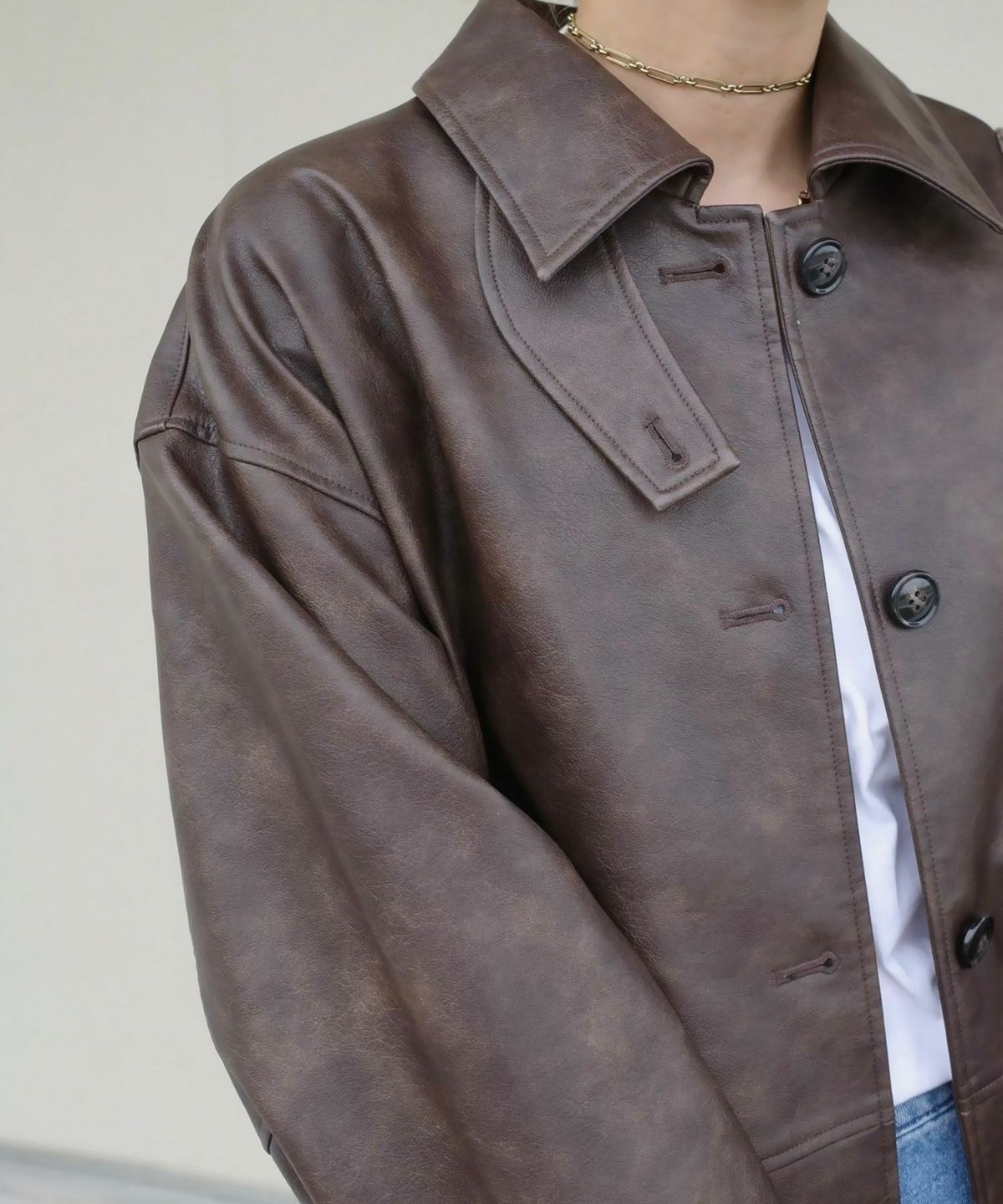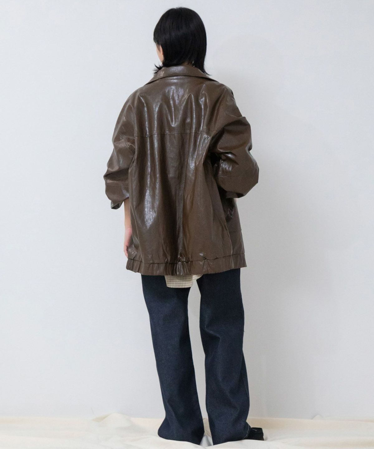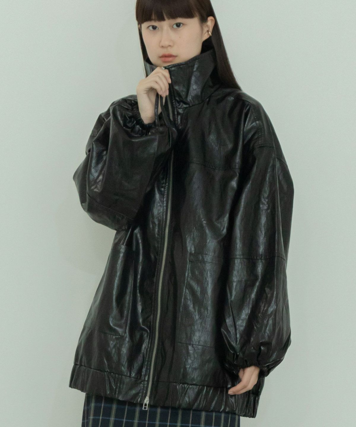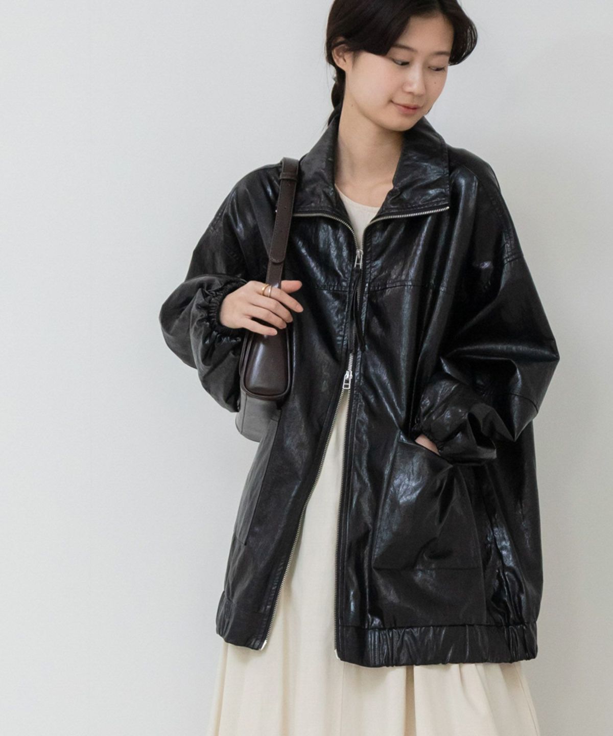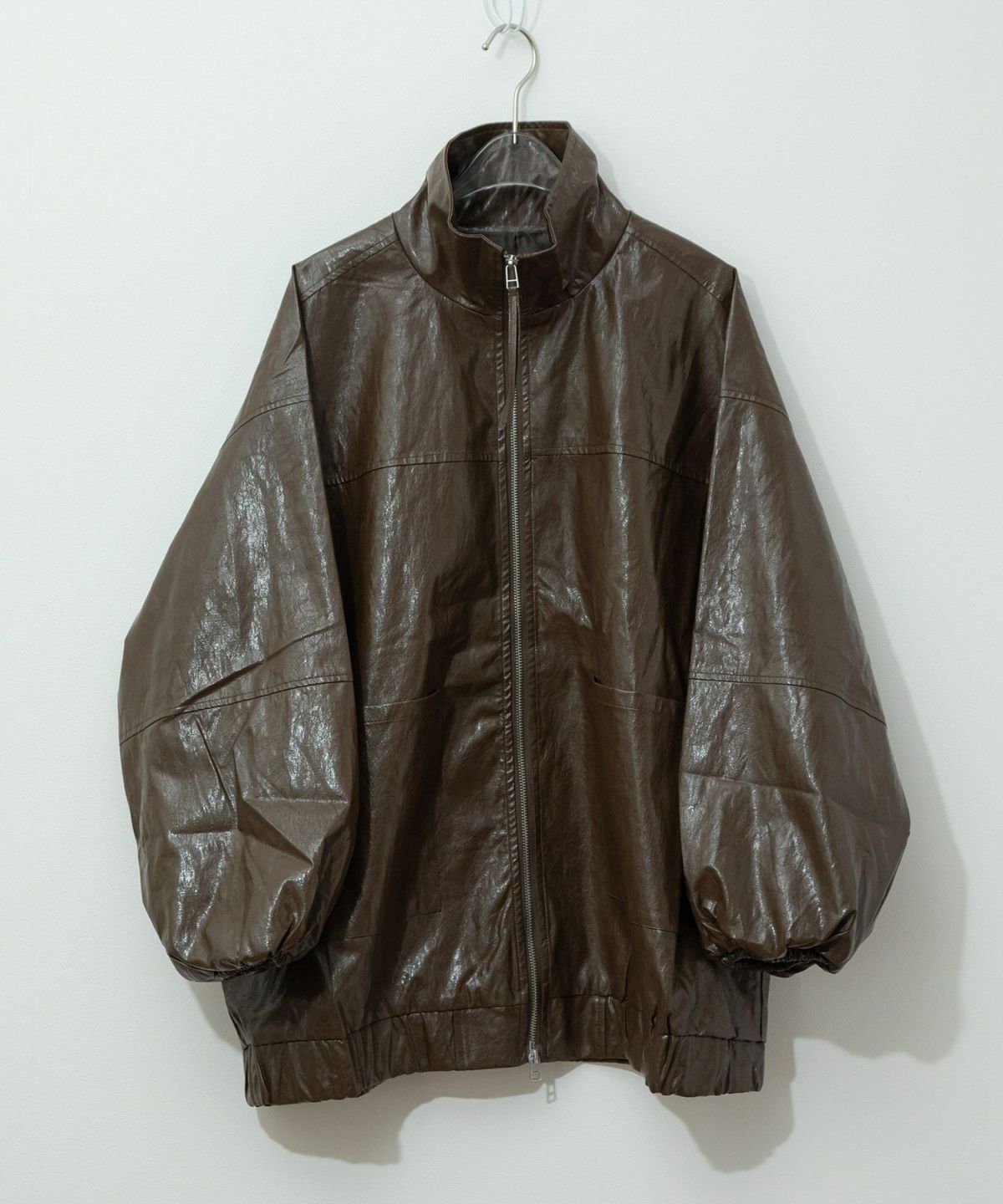ヴィンテージ感のある雰囲気に仕上げたフェイクレザーブルゾン Vintage Like Fake Leather Stand Blouson