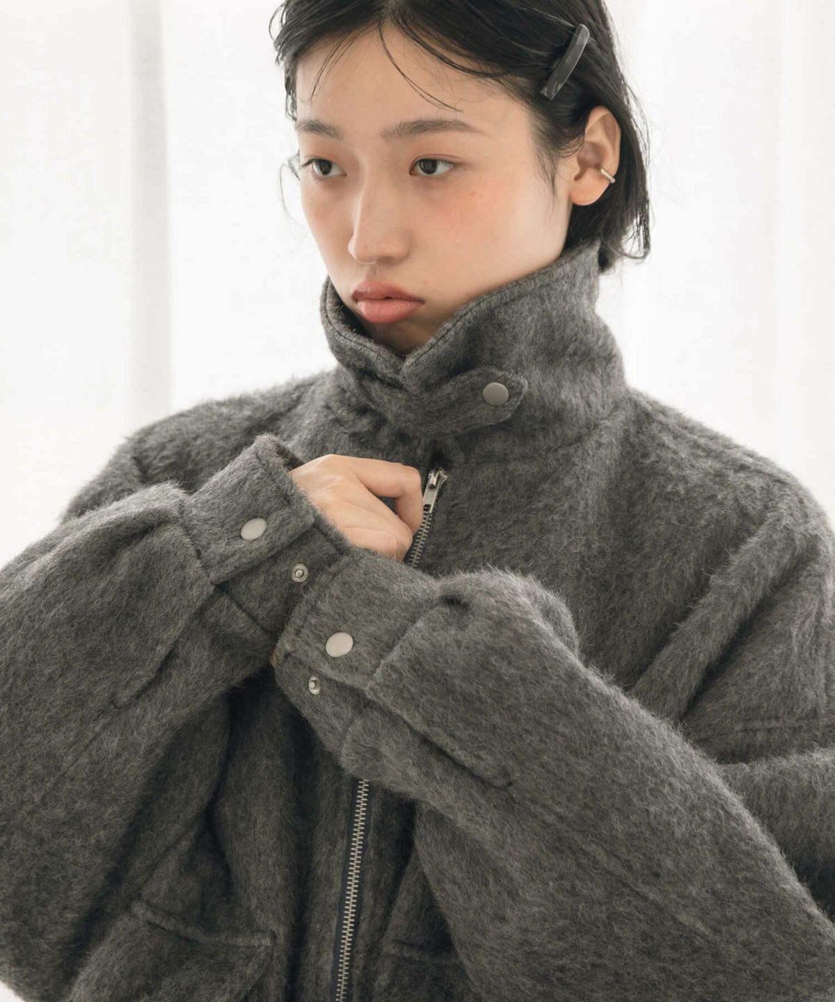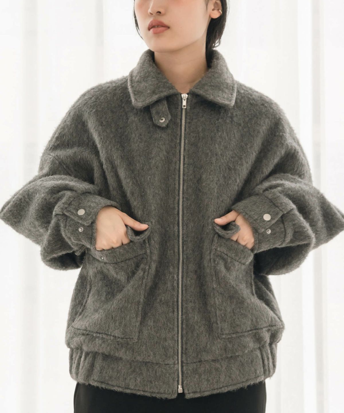 丸みのあるシルエットやボリュームスリーブブルゾン 【Hideka Select】Shaggy Flight Blouson
