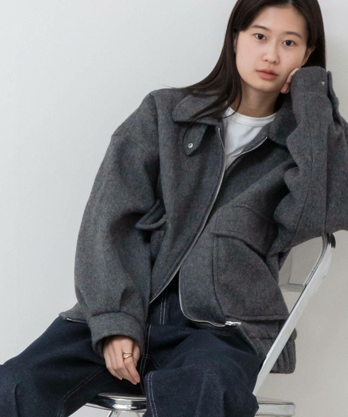 立体感のあるコクーンシルエットでクロップド丈のデニムブルゾン Denim Short Jacket