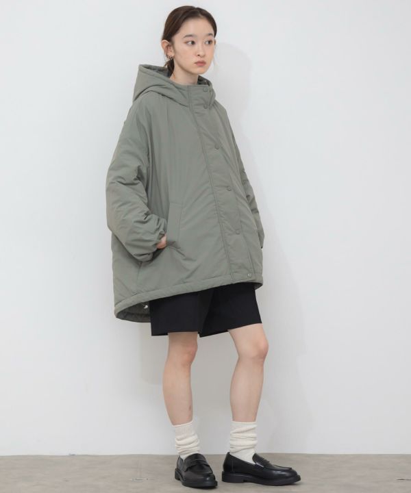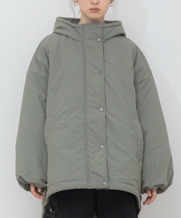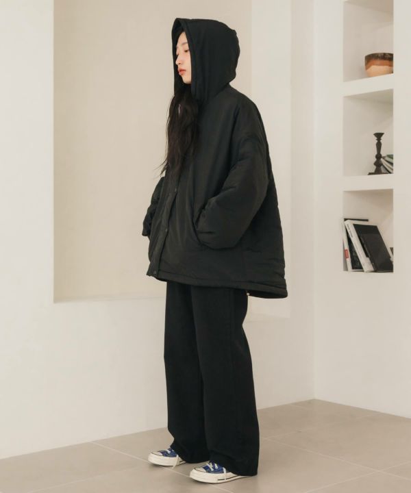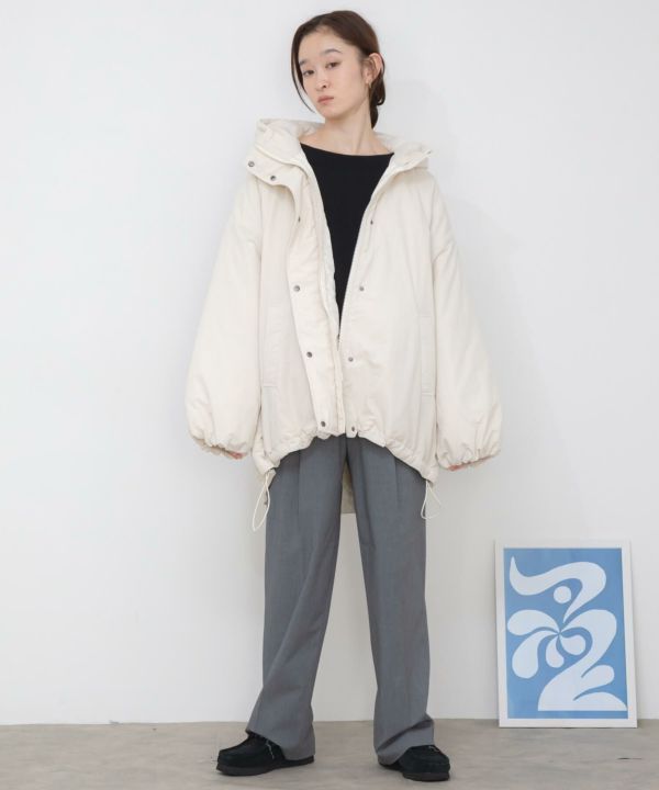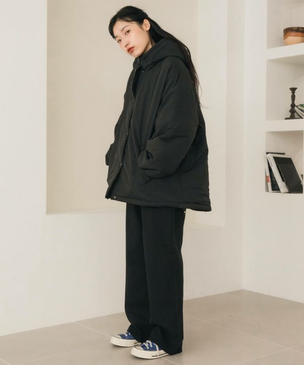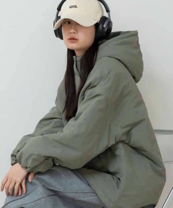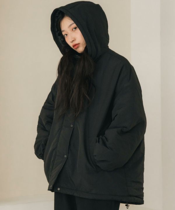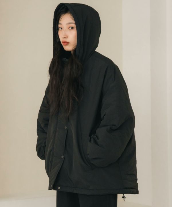 内側がウェーブキルトになっていて綿がずれにくく保温性も◎程よくオーバーサイズで軽さのあるアウターはシンプルなデザインで着回ししやすい一枚です♪