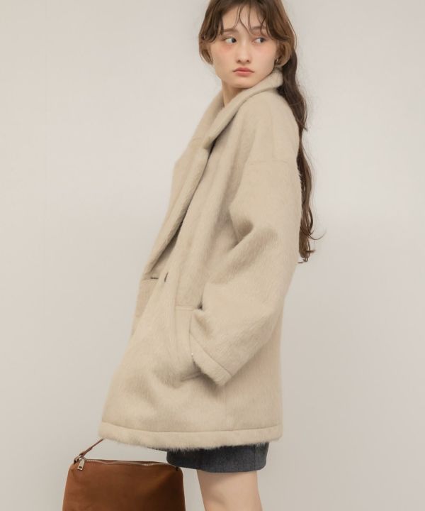 毛足のあるシャギー素材がシーズンムードを高めるアウター。