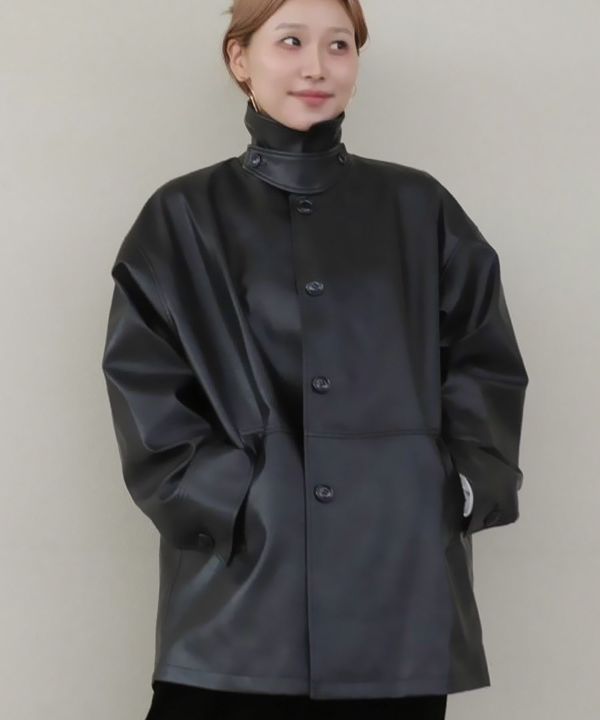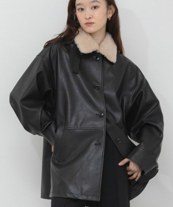 取り外し可能な配色のショートファー衿は顔周りに華やかさをプラスしてくれます◎ファー襟を取り外して、シンプルにステンカラーのレザージャケットとしても着こなし可能。