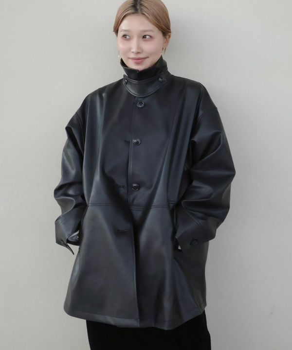 ハードになりがちなレザーアイテムをゆったりとした身幅とドロップショルダーでラフにカジュアルダウンして着用できるよう仕上げました。