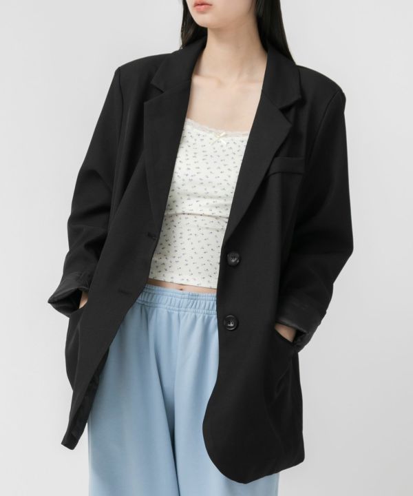 ゆったりとしたシルエットが特徴のテーラードジャケット。