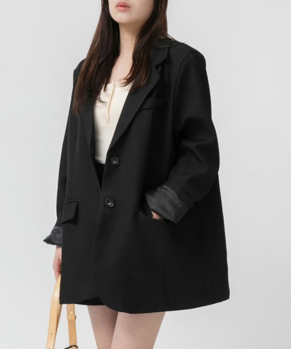 クラシックなラペルデザインとシングルボタンが上品な雰囲気を演出します。