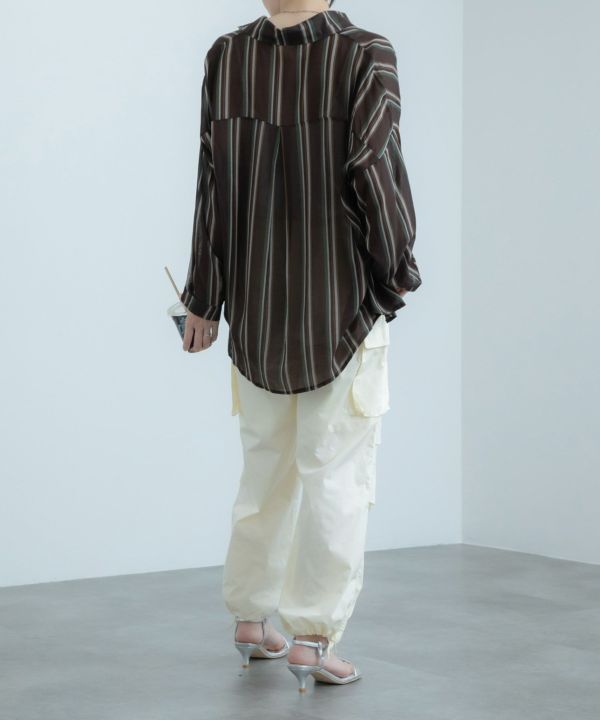 1枚で着るのはもちろん、羽織としても大活躍するストライプシャツ。透け感のある生地が軽やかな印象で、タックインをしてもすっきり着こなせます!デニムと合わせたカジュアルなスタイリングとの相性が抜群です。