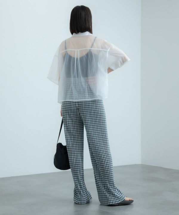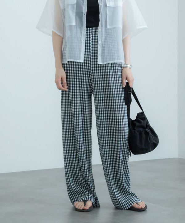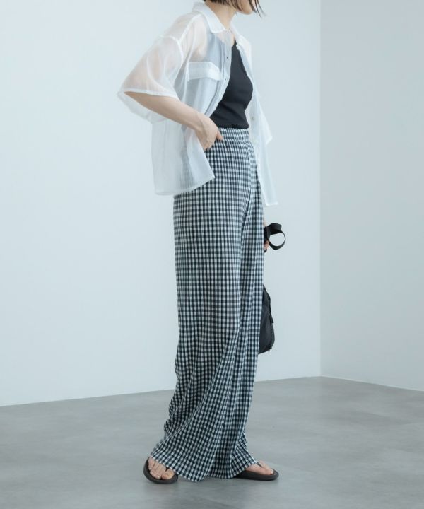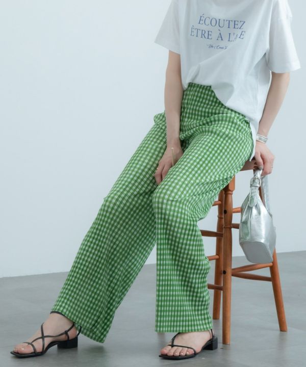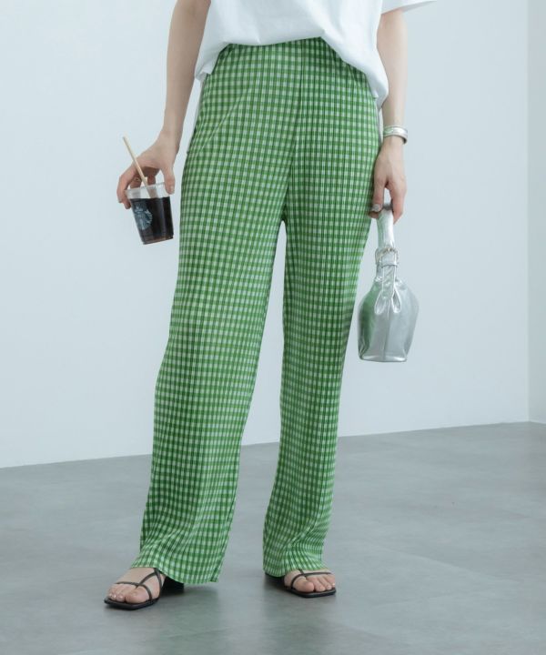 さらっと涼やかで肌離れが良いので季節を選ばない履き心地。柔らかな着用感と薄手の生地感で、夏は快適な着用感を叶えるパンツです。プリーツ加工とストレートシルエットが縦長のIラインを強調してくれます。裾は切りっぱなし仕様で、セルフでお好みの長さに調整ができるのもポイントです。