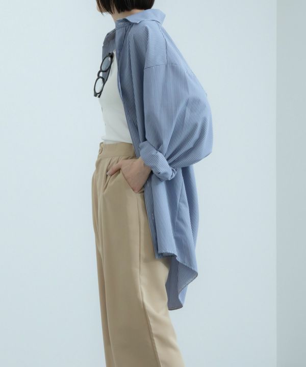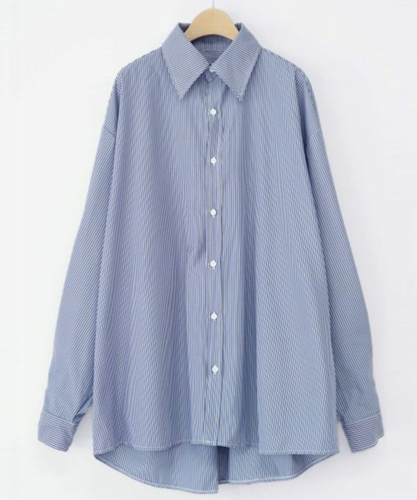 服の中で身体が泳ぐゆるっとしたシルエットが旬なストライプシャツ。