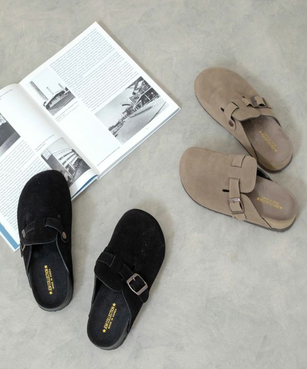 足なじみの良いコルクインソールを使用しており、着脱しやすいミュールタイプで着脱もらくちんです。