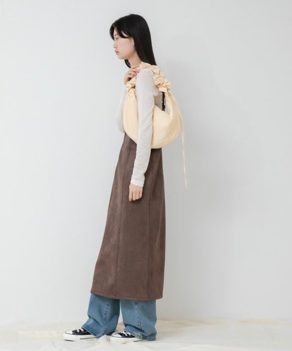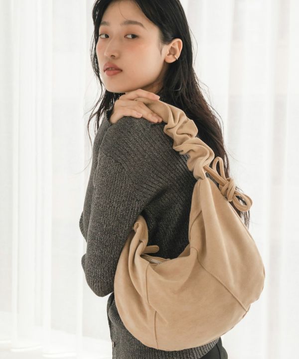 トレンドのワンショルダーバッグが登場&ブラウン/ベージュヴィンテージ感のあるフェイクスエード素材はマットで柔らかな印象。