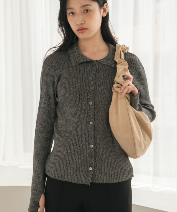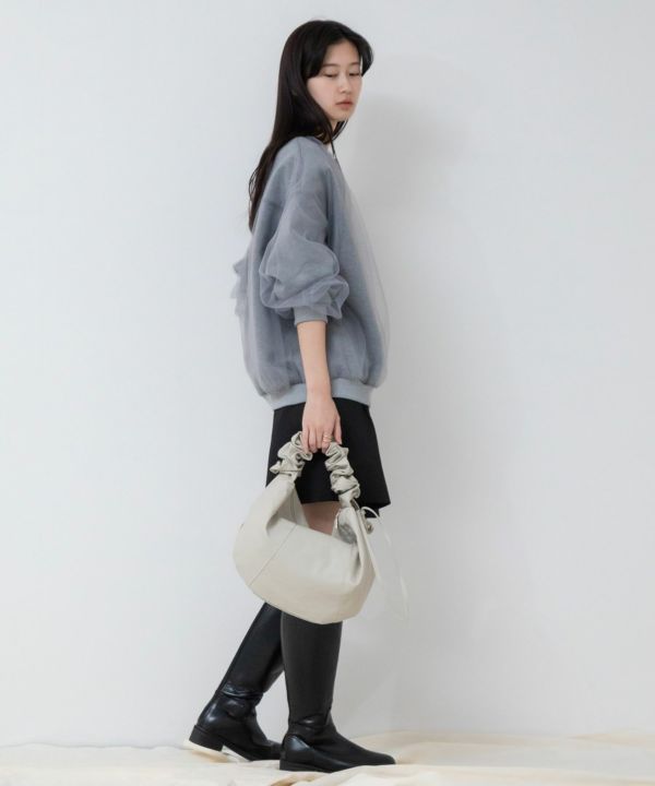 ブラック/グレイッシュベージュ表面感のあるフェイクレザー素材は艶やかで大人っぽく。