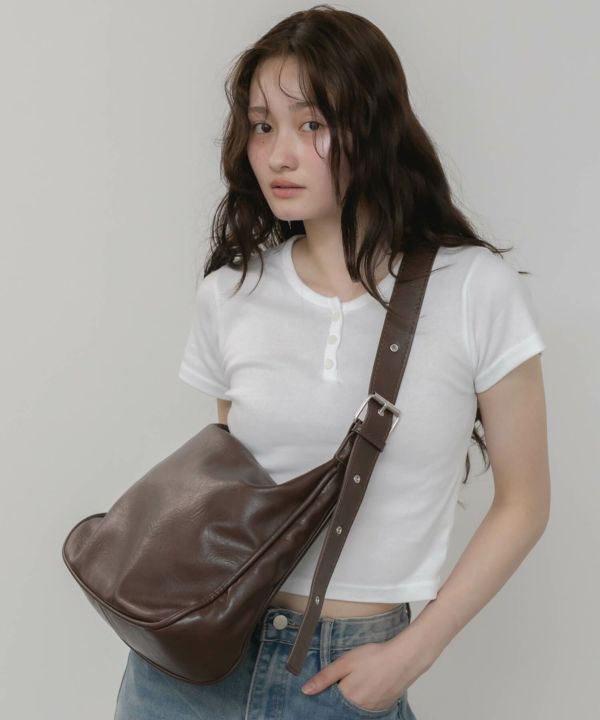 両側が調整できるダブルベルトのため肩掛け、ななめ掛けと2WAYで使用でき、カジュアル、モード問わず長さ次第で雰囲気を変えて使用できます。